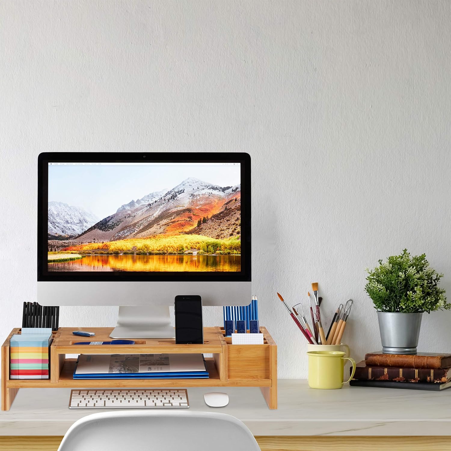 - Organizer: Platte des Monitortischs mit 3 Fächern für Handy, Stifte und mehr - Geräumige Ablage darunter