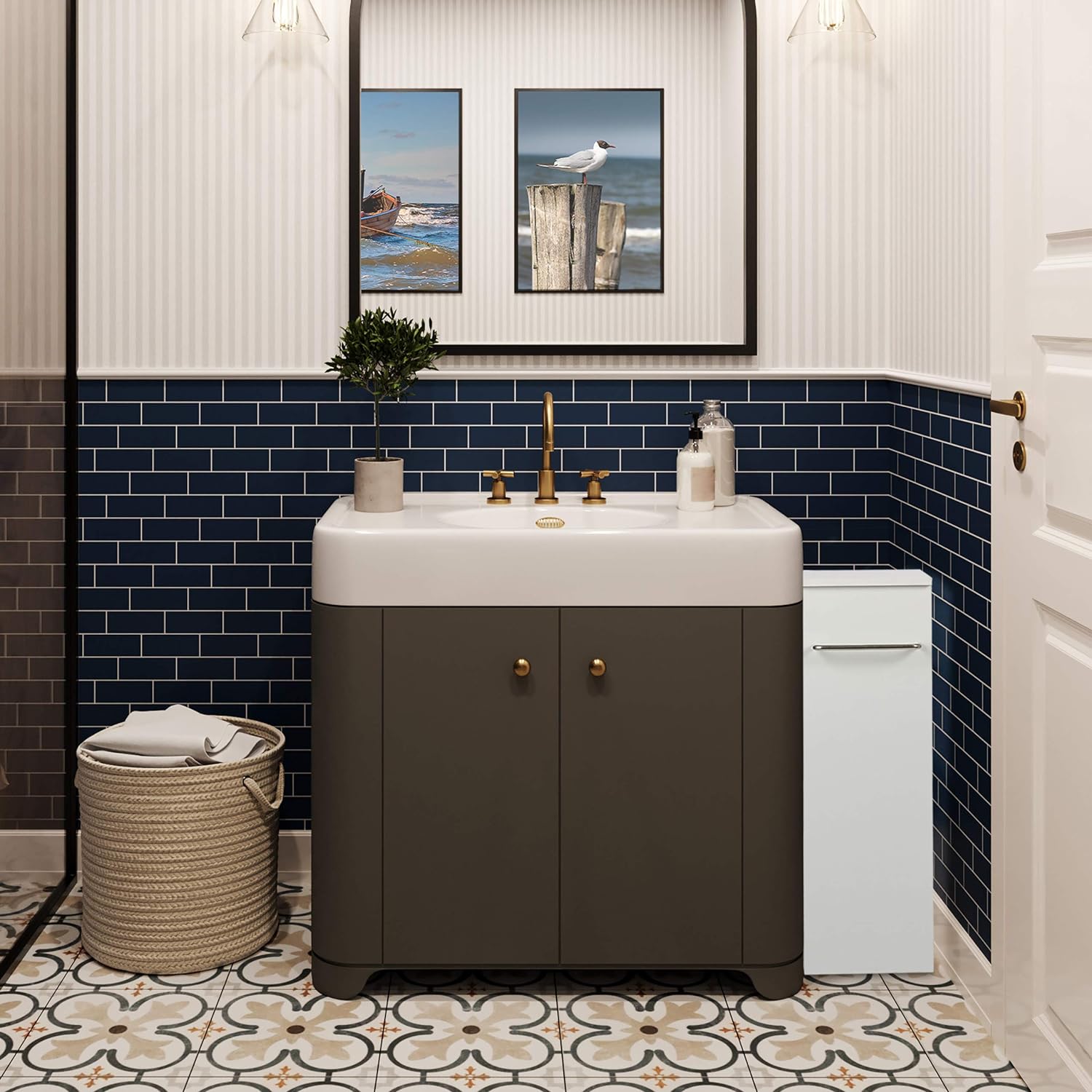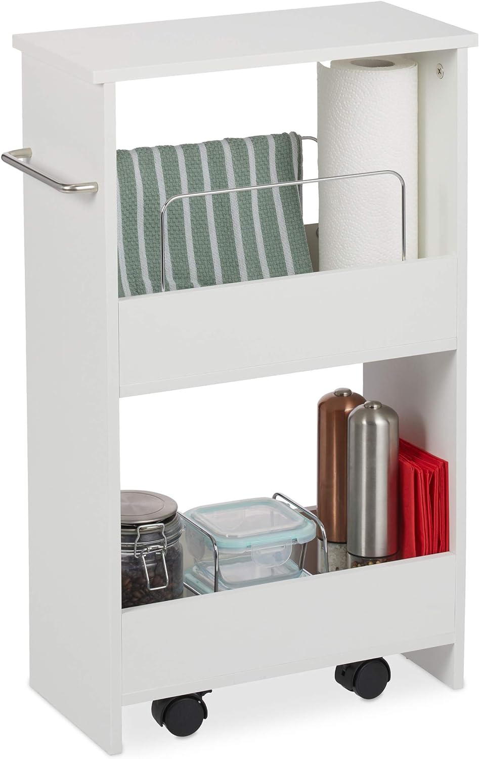 Relaxdays Nischenwagen, 2 Fächer, Nischenregal mit Rollen, 20 cm breit, schmales Regal Bad & Küche,
