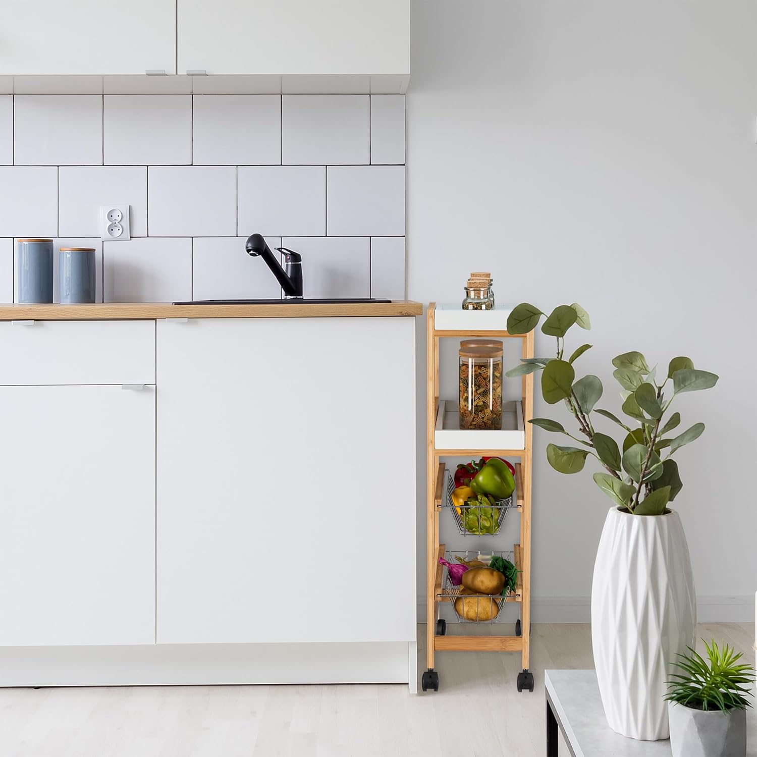 • Platzsparend: Mit dem praktischen Nischenwagen schaffst Du Stauraum in schmalen Lücken und Ecken