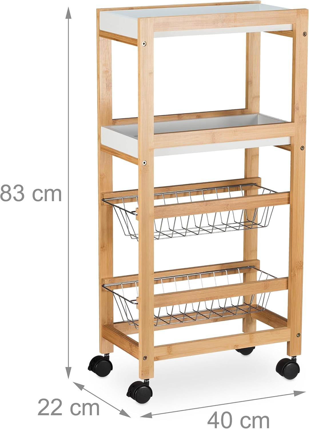 Relaxdays Nischenwagen, 4 Ablagen, schmales Nischenregal Bad & Küche, HBT 83 x 22 x 40 cm, Bambus, R