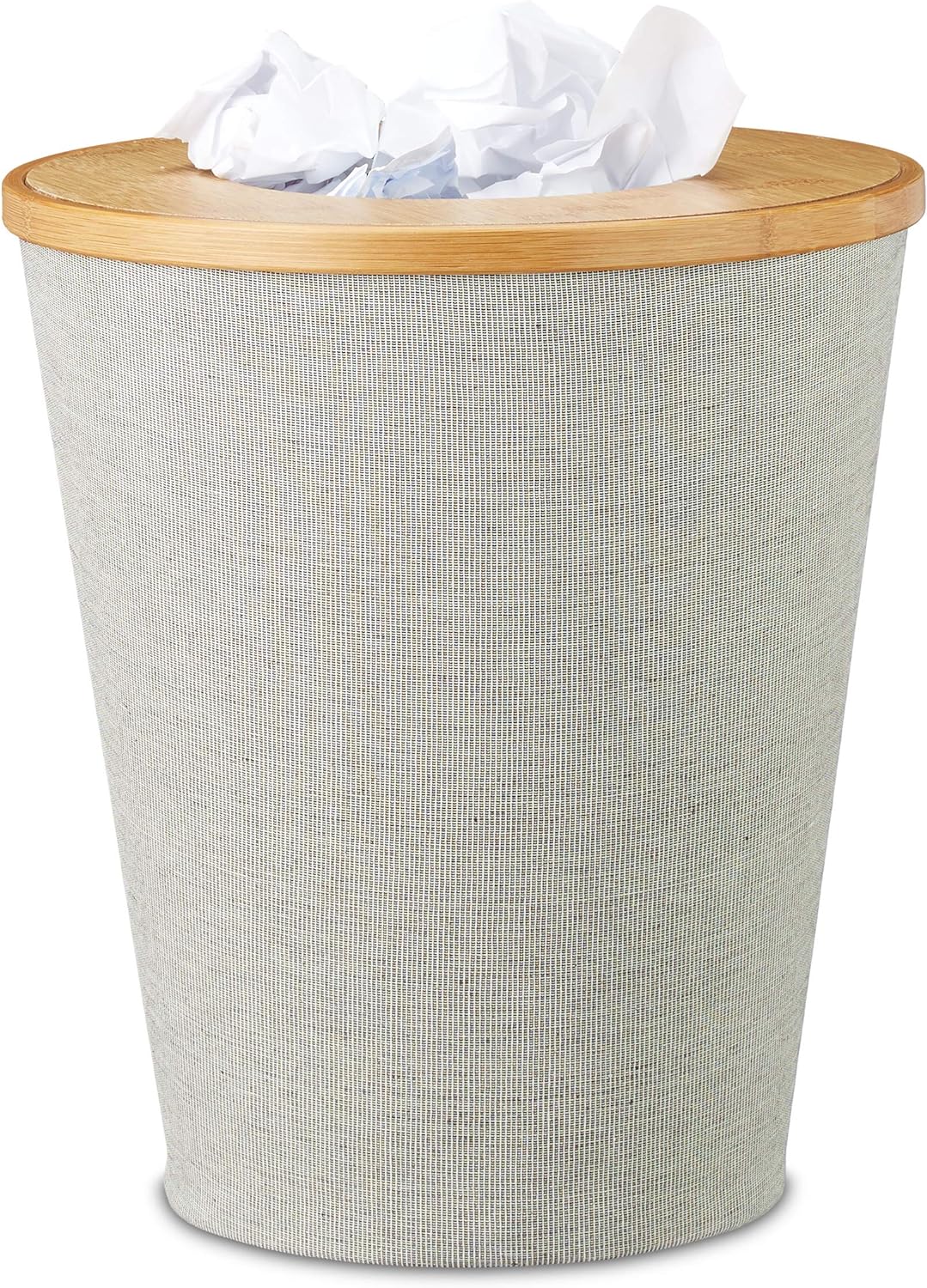 - Natürlich schön: Der obere Rand und der kreisrunde Deckel sind aus Bambusholz gefertigt - Die naturbelassene Maserung verwöhnt das Auge - Das feuchtigkeitsresistente Naturholz überzeugt auch im Bad