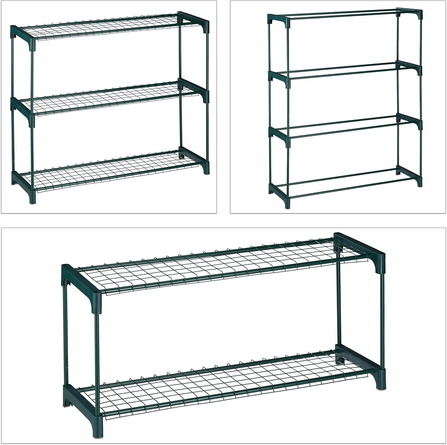• Mehrstöckig: 2 grüne Pflanzenregale mit vier Etagen für Pflanzen und Deko - Belastbare Gitterablagen