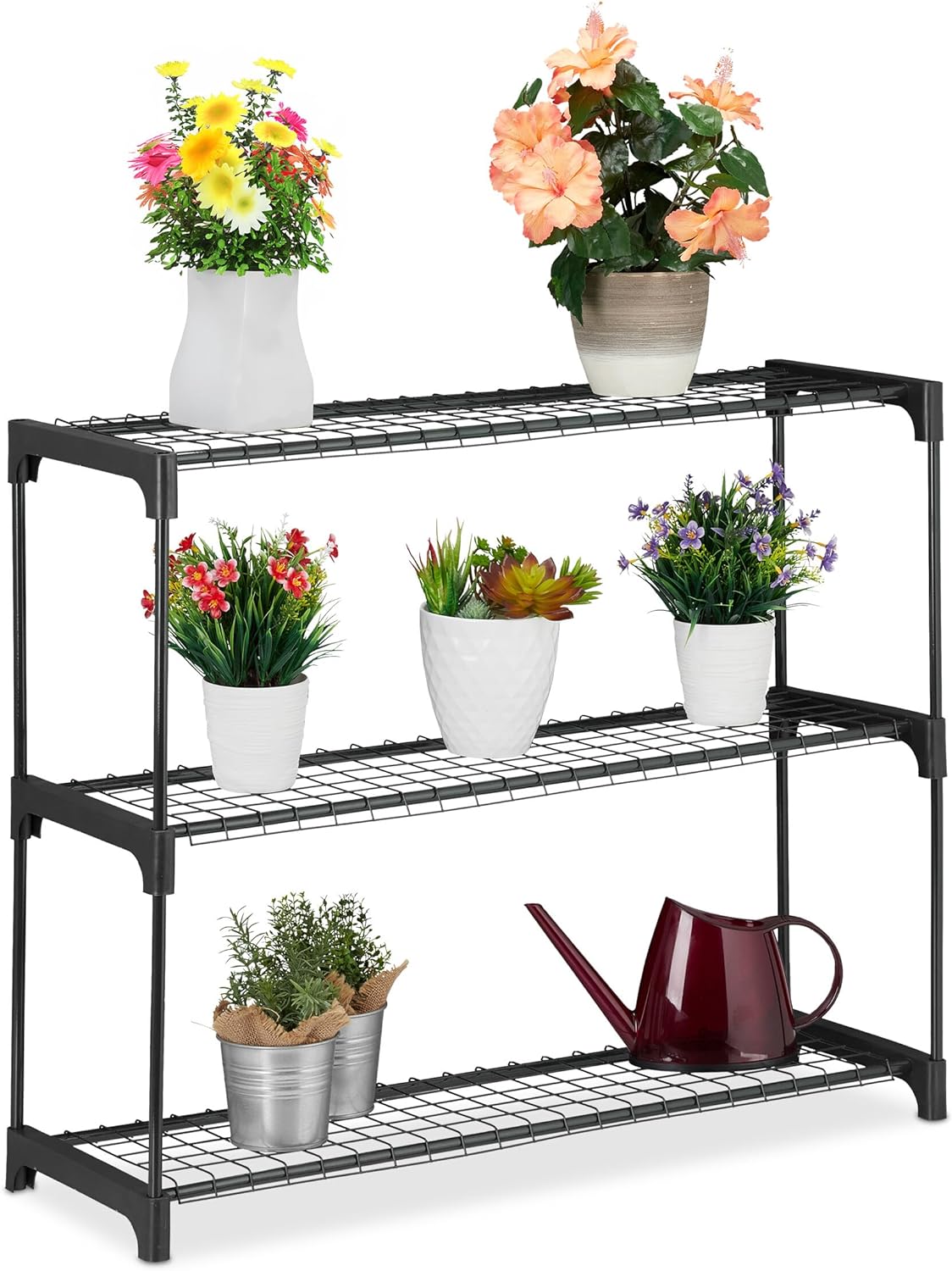 Relaxdays Pflanzenregal, 3 Ablagen, für Blumen-& Pflanzentöpfe, Indoor, Metall & Kunststoff, HBT: 72