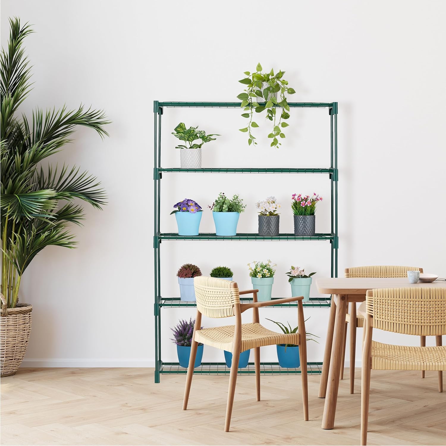 - Mehrstöckig: Grünes Pflanzenregal mit 5 Stufen für Pflanzen und Deko - Belastbare Gitter-Ebenen