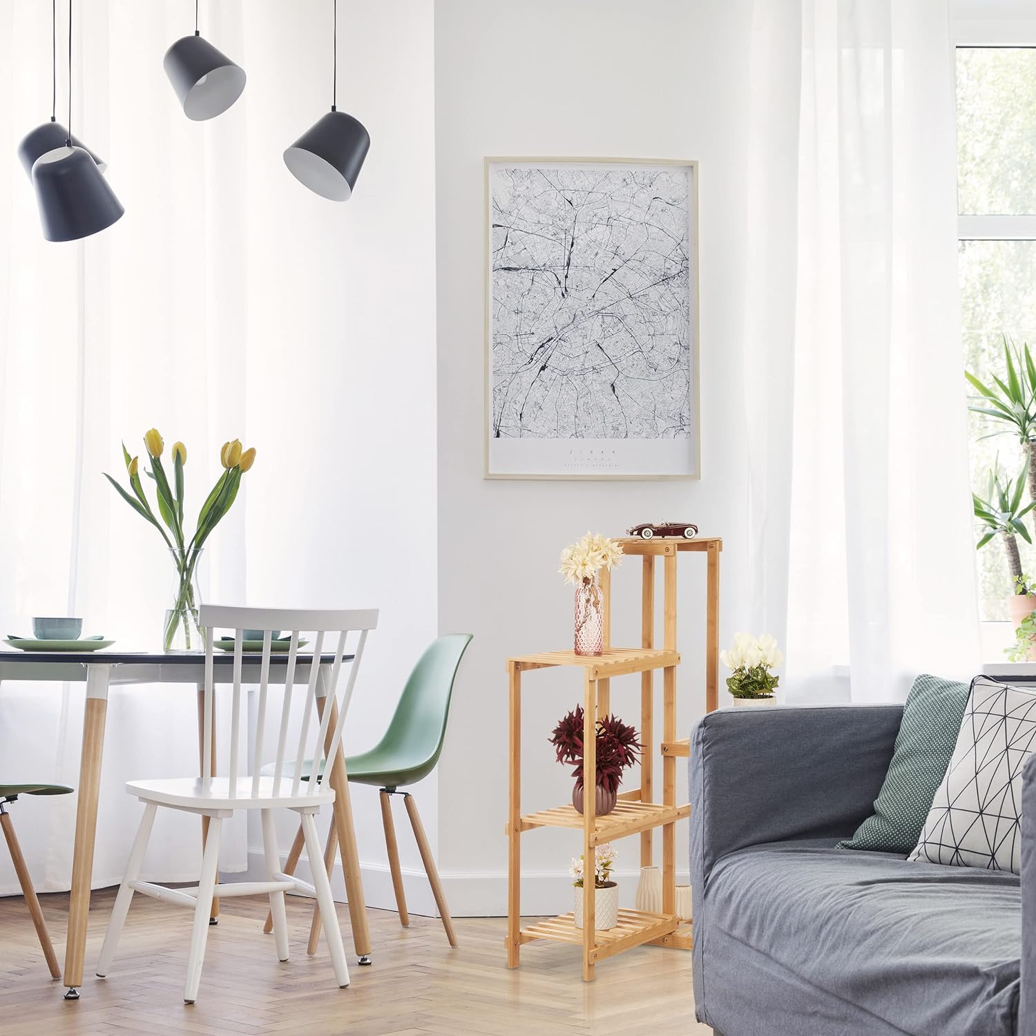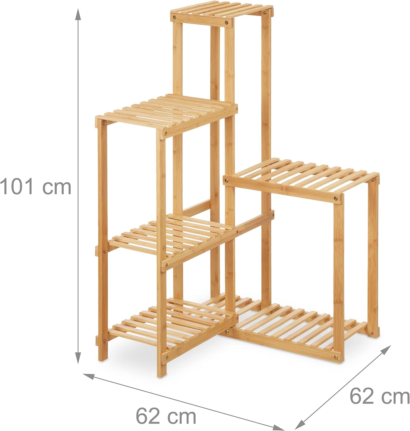 - Design: Platzsparendes Pflanzenregal für die Zimmerecke - Modernes Eckregal aus natürlichem Bambus