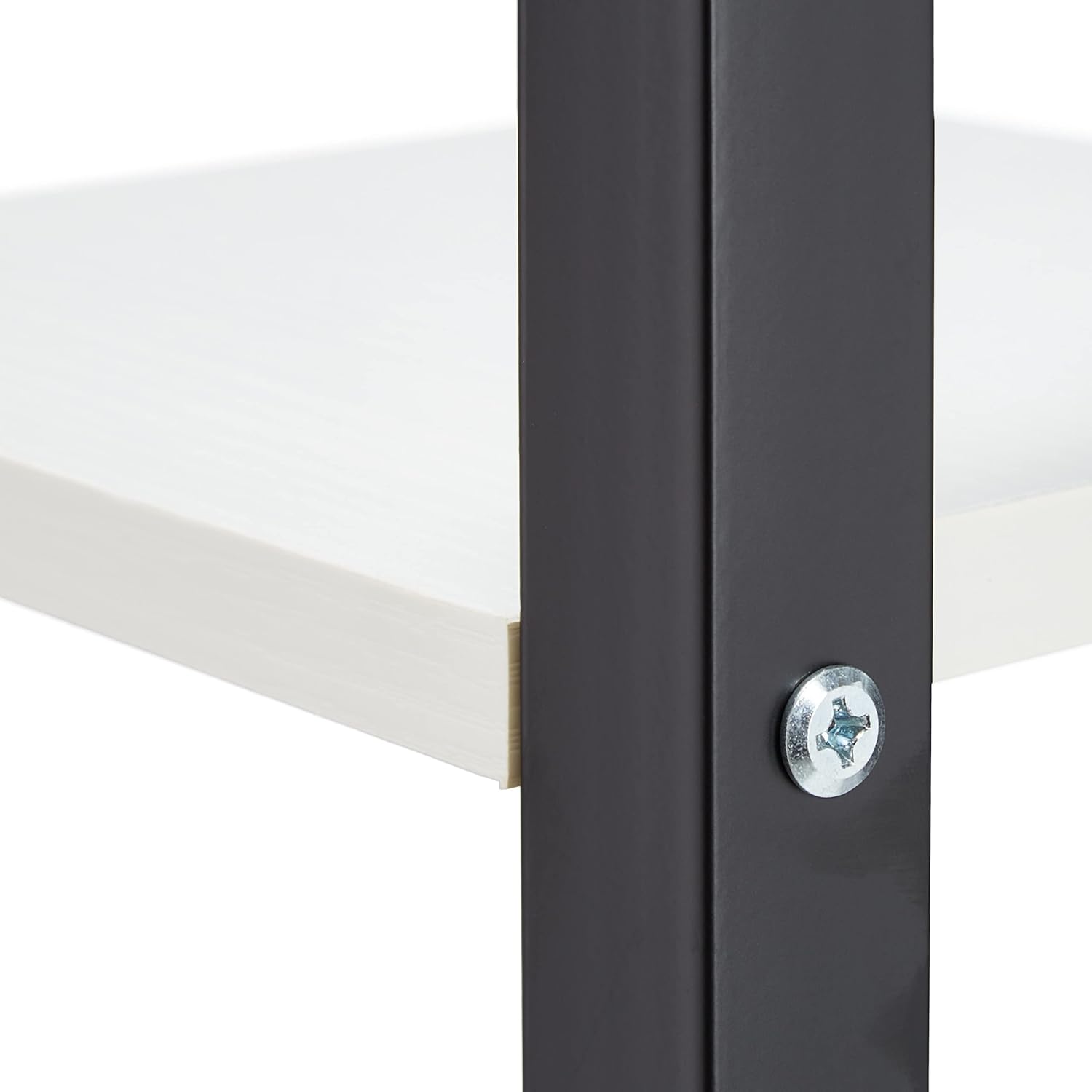 • Materialmix: Stilvolle Pflanzentreppe mit schwarzem Metallgestell und Ablagen in weisser Holzoptik