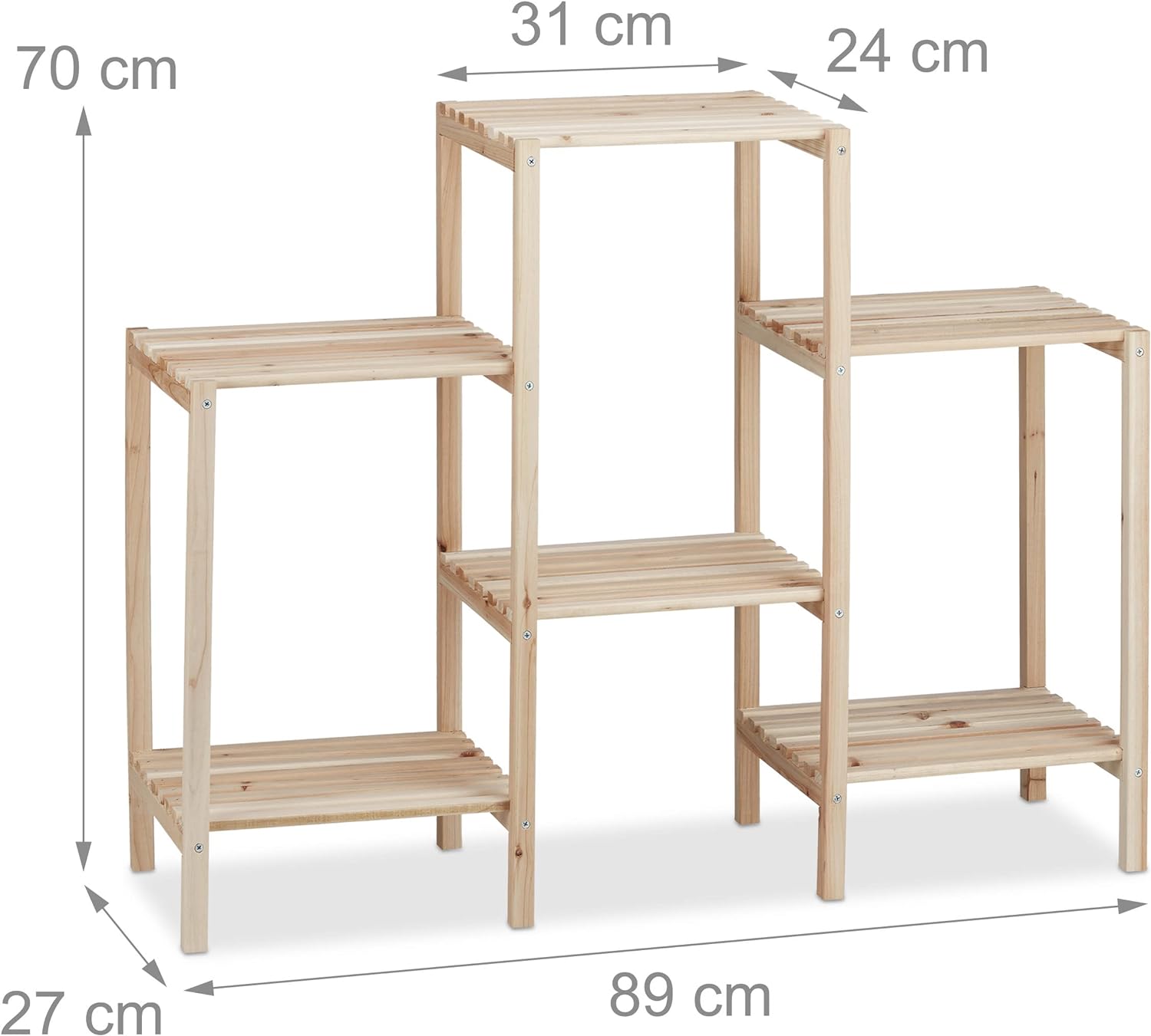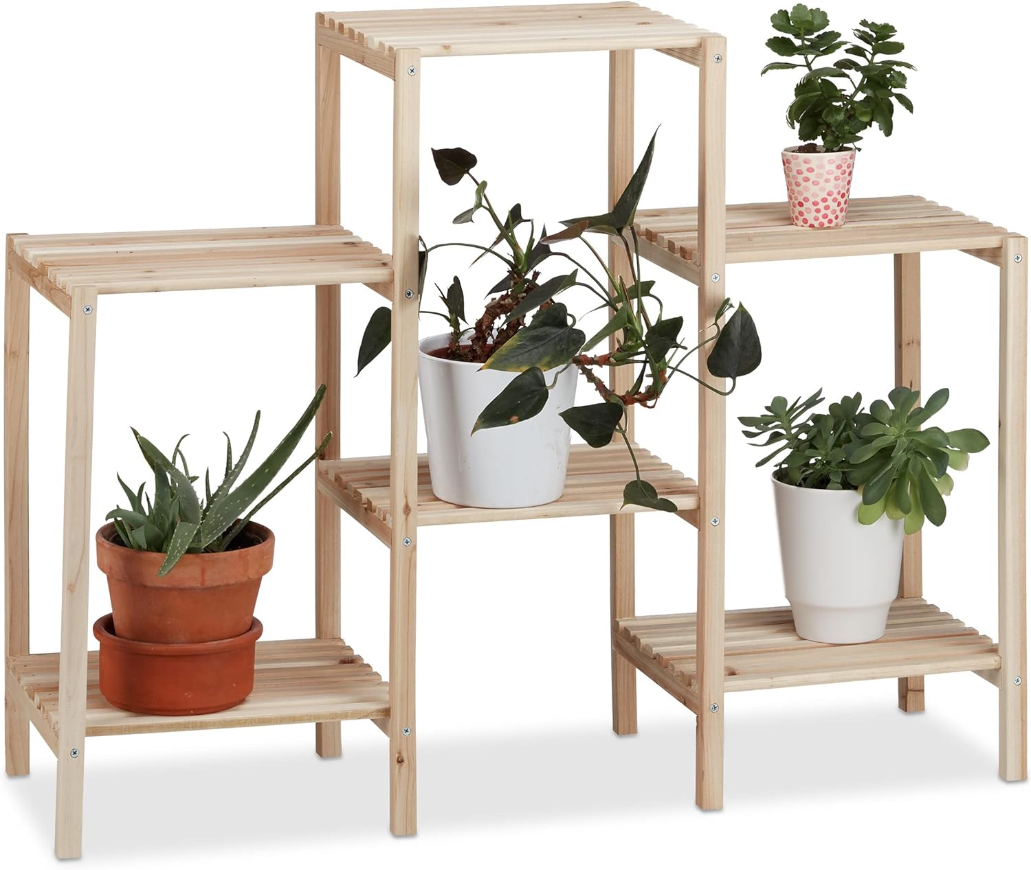 Relaxdays Pflanzenregal Holz, für Innen, stabil, rustikal, rostfrei, massiv, Blumenregal, HxBxT: 70