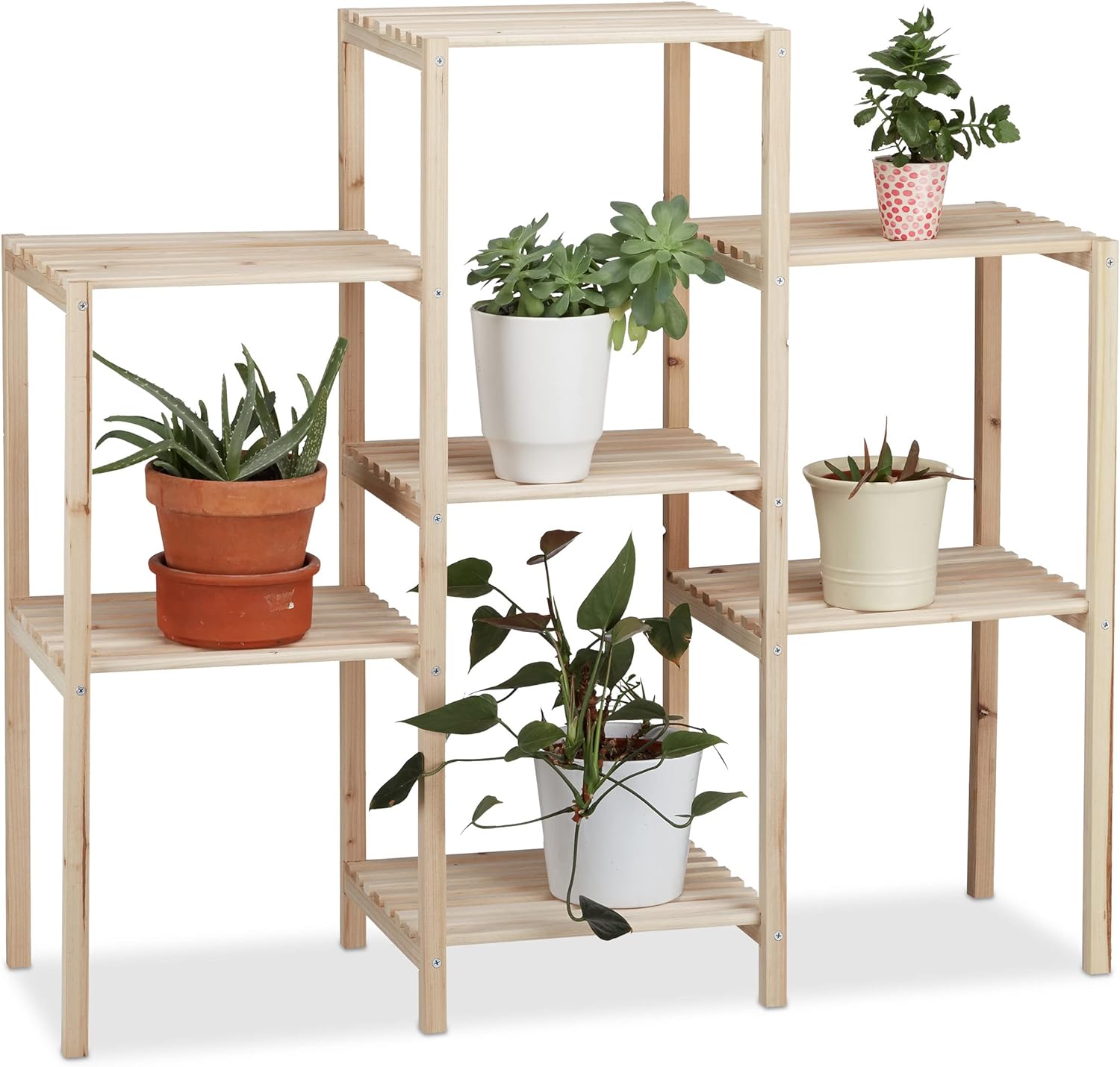 Relaxdays Pflanzenregal Holz, für Innen, stabil, rustikal, rostfrei, massiv, Blumenregal, HxBxT: 86