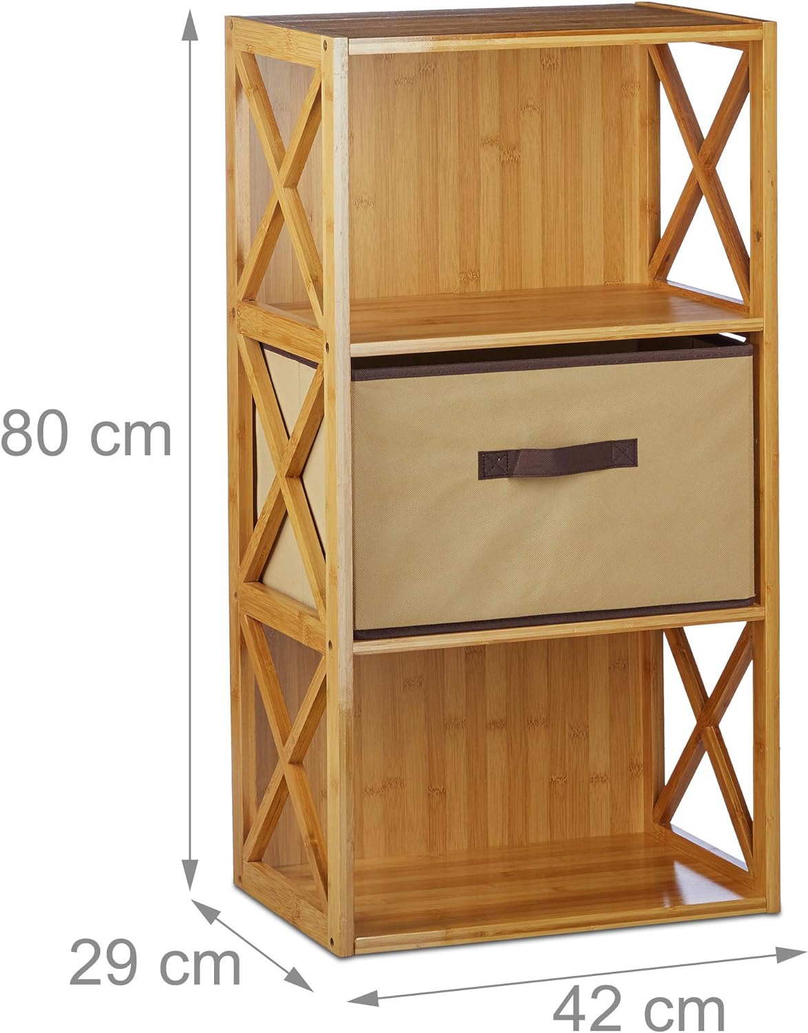 Relaxdays Regal Bambus mit Korb, 3 Ablagen, Holz Standregal, Badregal, Faltbox, HxBxT: 80 x 42 x 29