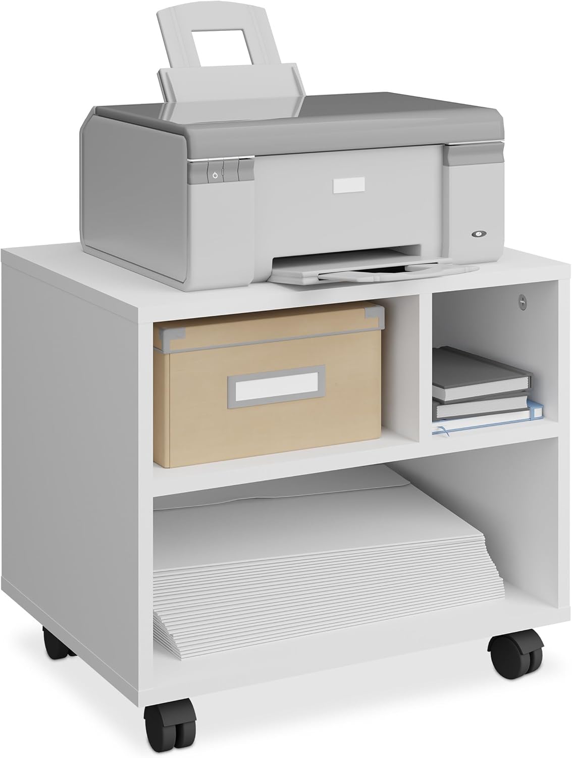 • Mobil: Dank der 360 Grad drehbaren Rollen ist der Druckerwagen überall nutzbar - 2 Räder mit Bremse