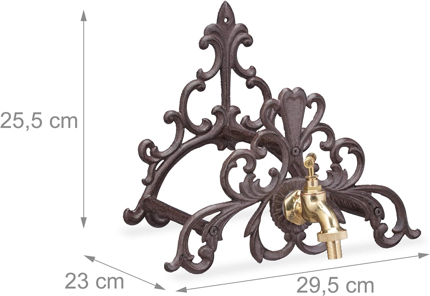 - Basics: Dunkelbraune Gartenschlauch Aufhängung aus Gusseisen - H x B x T: ca. 25,5 x 29,5 x 23 cm