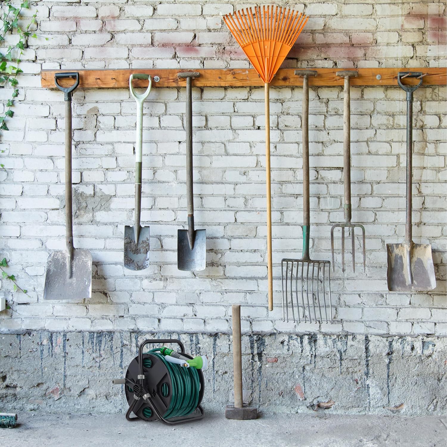 - Mobil: Stehender Schlauchhalter mit Griff - Bei Nichtgebrauch platzsparend im Schuppen verstaubar
