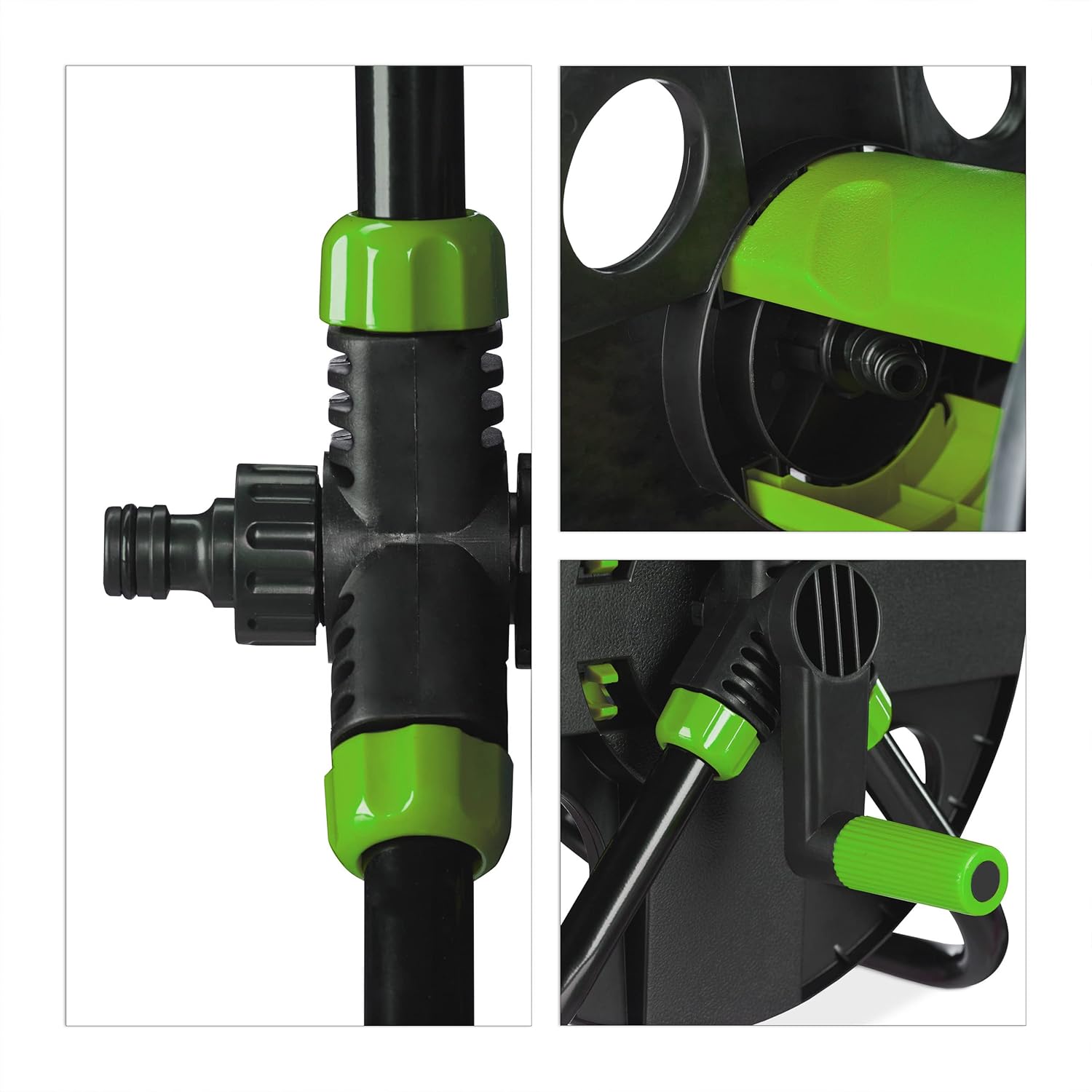 - Stabil: Schlauchwickler mit Handkurbel steht dank dreieckiger Konstruktion auch beim Giessen sicher