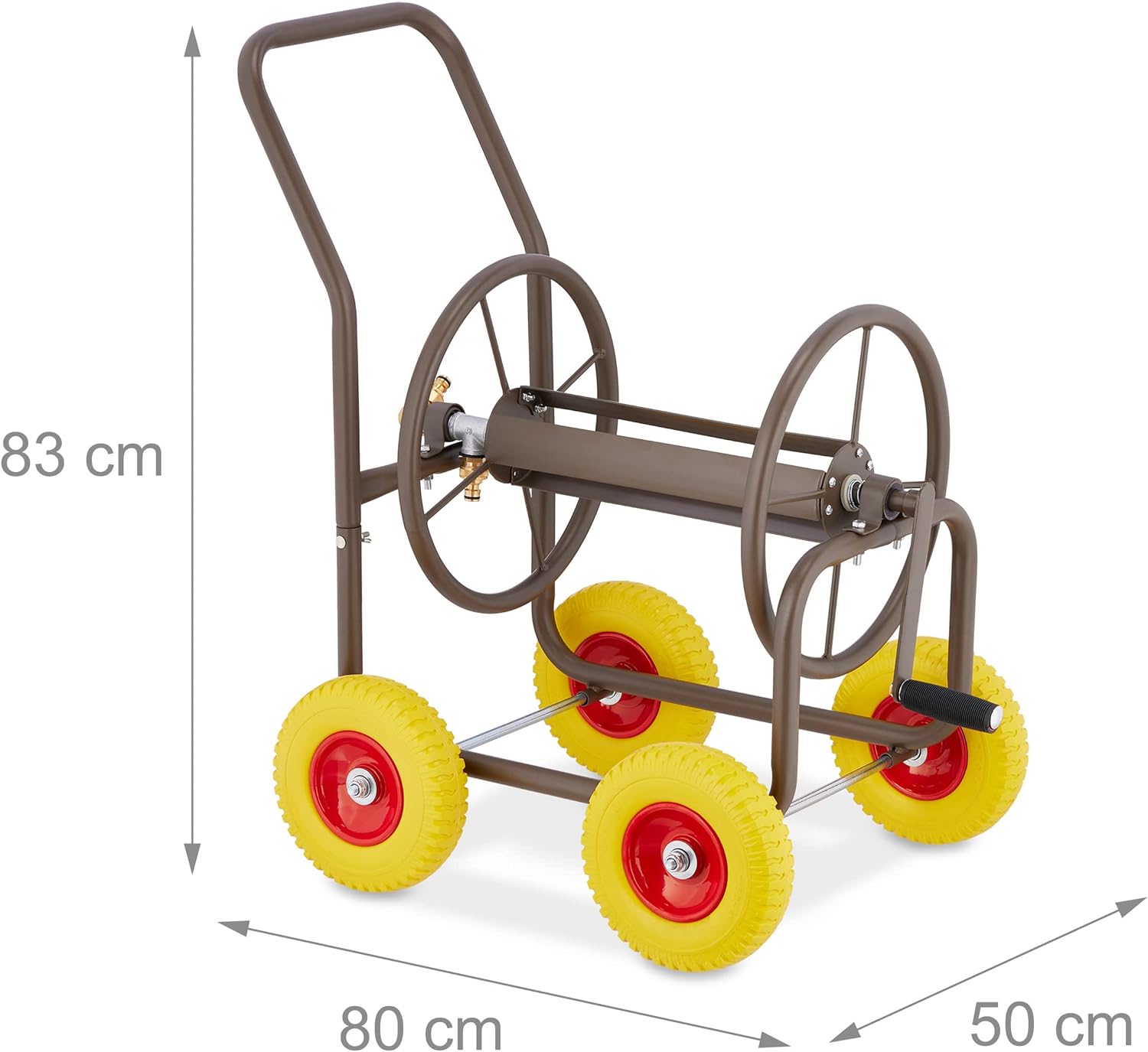 - Details: Brauner Schlauchwickler aus Metall - HxBxT: ca. 83 x 50 x 80 cm - Lieferung ohne Schlauch