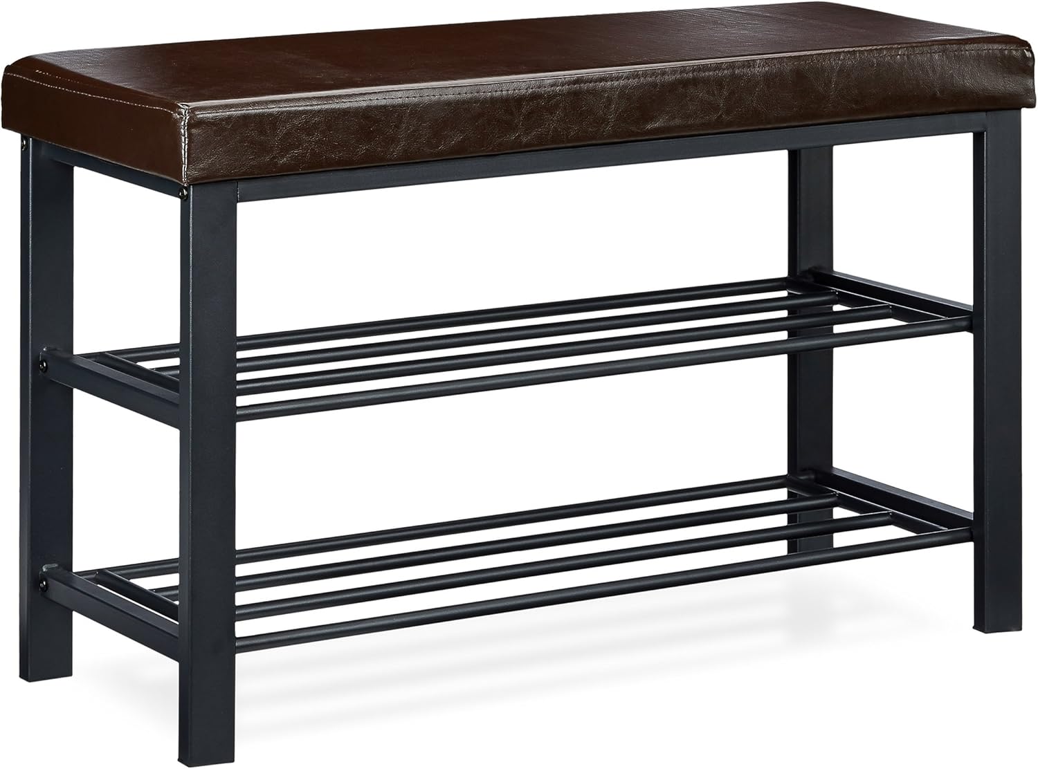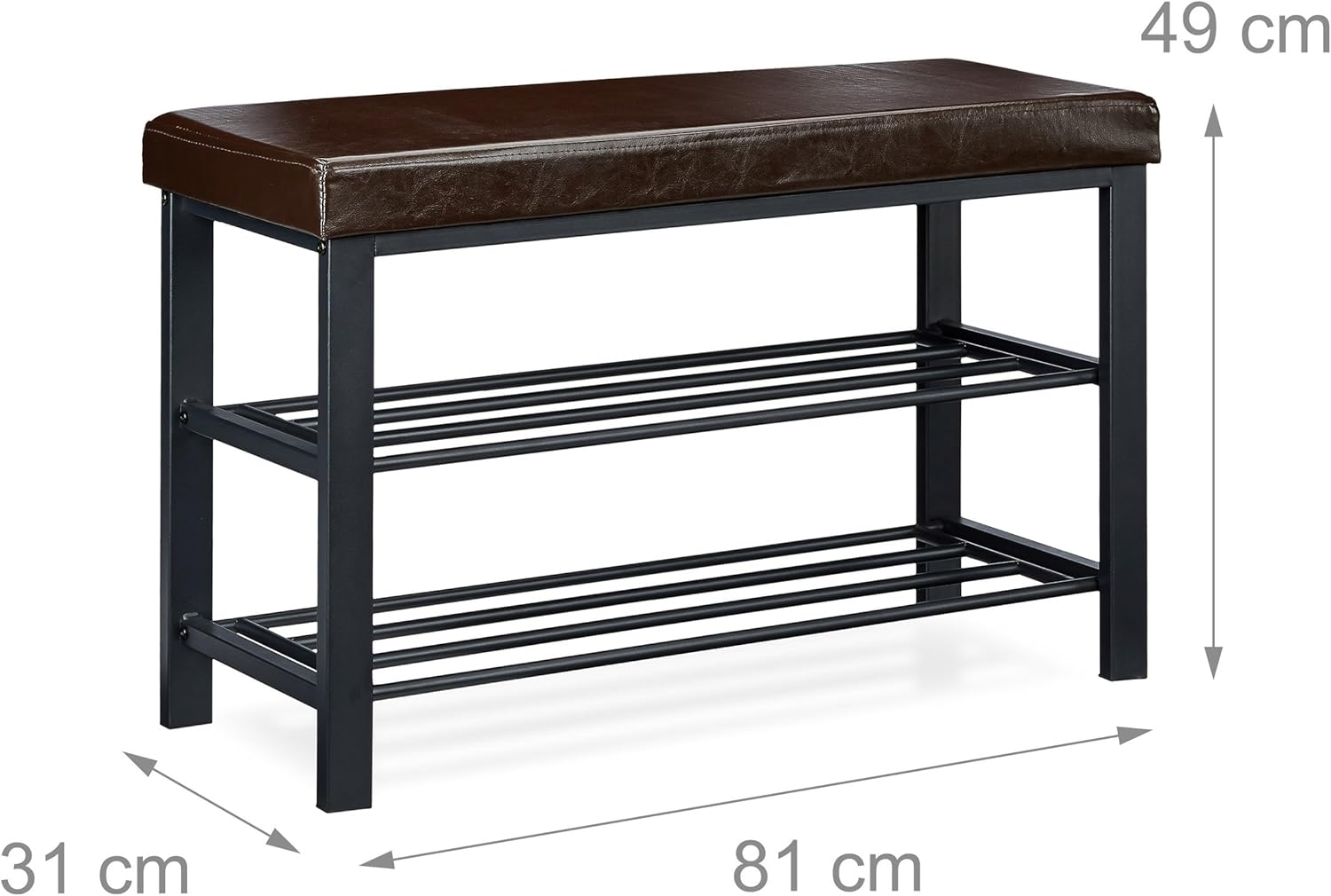 Relaxdays Schuhbank, offen, für 6-8 Paar Schuhe, Schuhregal zum Sitzen, Polsterung aus Kunstleder, H