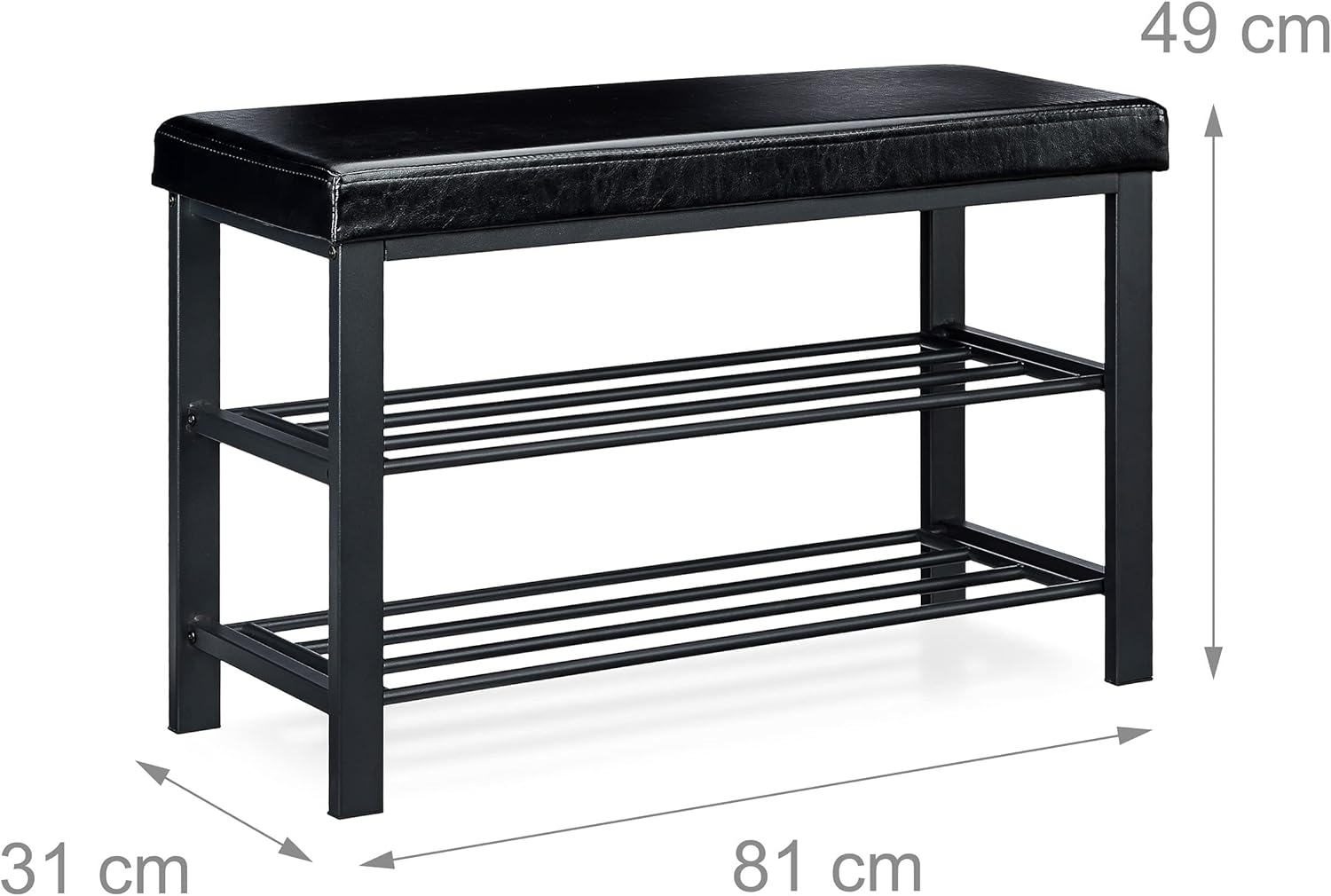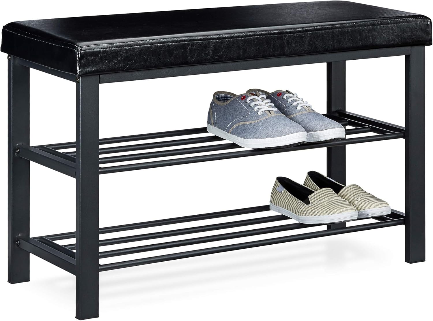 Relaxdays Schuhbank, offen, für 6-8 Paar Schuhe, Schuhregal zum Sitzen, Polsterung aus Kunstleder, H