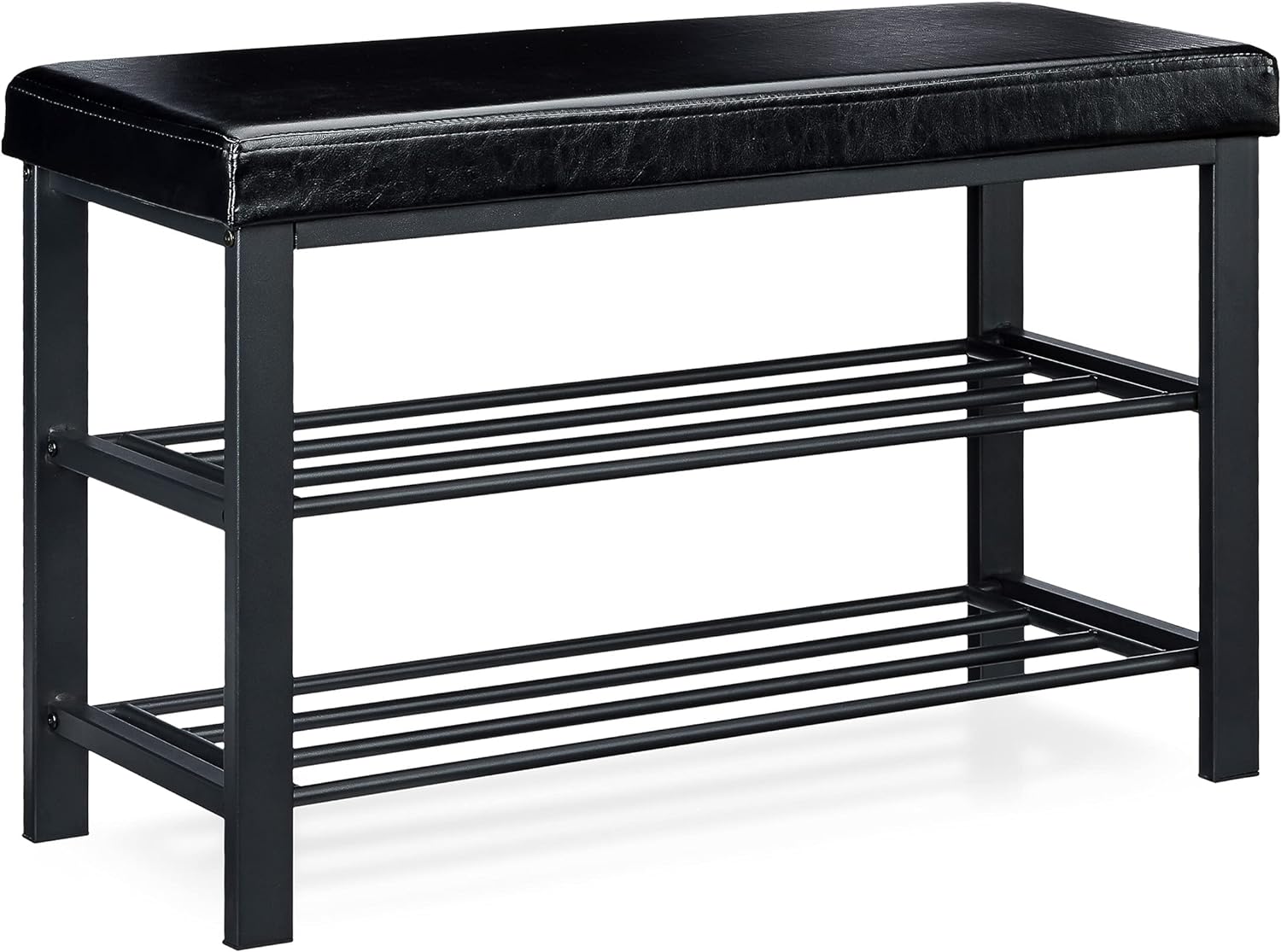 • Die Schuhbank in Schwarz kann multifunktional als Schuhregal und als Sitzbank verwendet werden. Durch die weiche Polsterung der Sitzfläche aus Kunstleder ist ein angenehmes Sitzen gewährleistet