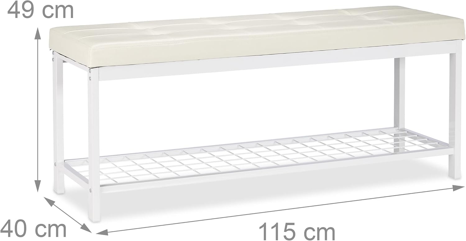 Relaxdays Schuhbank XXL, bequemes Sitzpolster, offen, grosse Gitterablage für Schuhe, Metall, HxBxT: