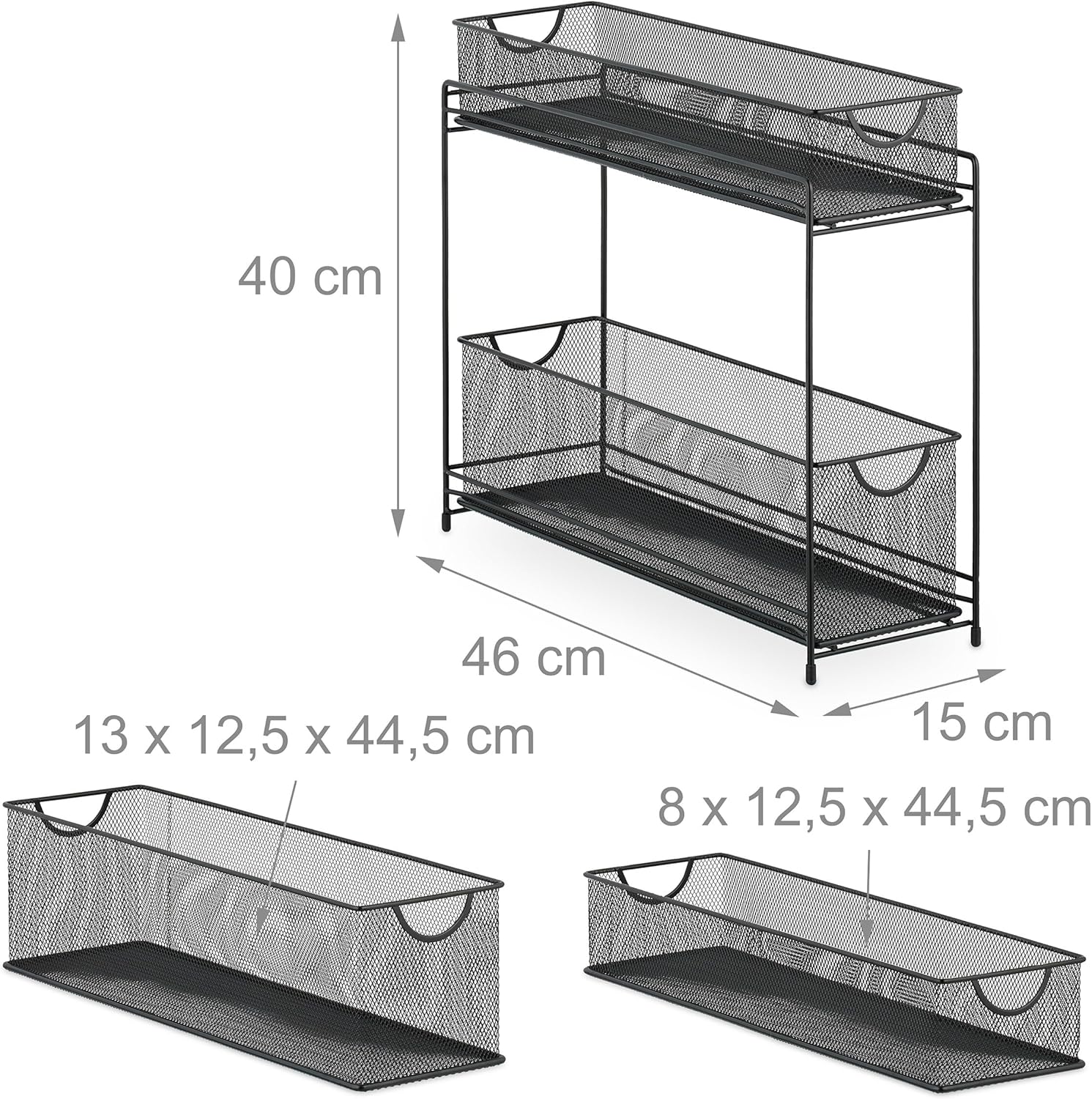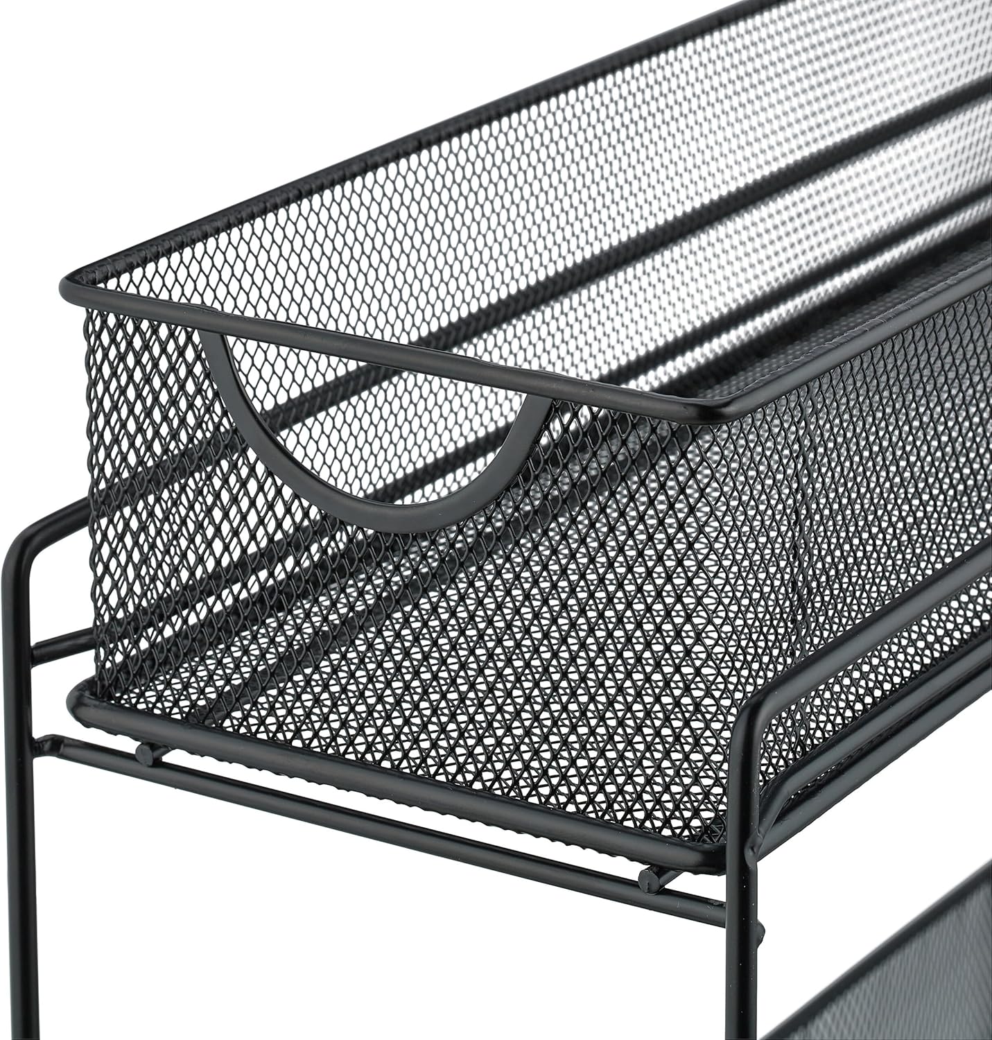 - Design: Schwarzer Küchenschrank-Organizer mit 2 Ausziehkörben mit Griffen - Im modernen Mesh-Design