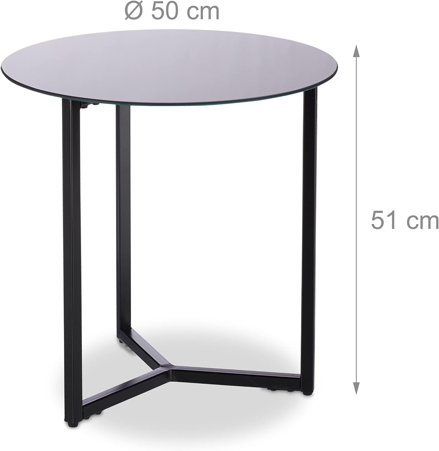 Relaxdays Schwarz Runder Beistelltisch aus Glas und Metall, dekorativer Loungetisch, HxBxT: 51 x 50