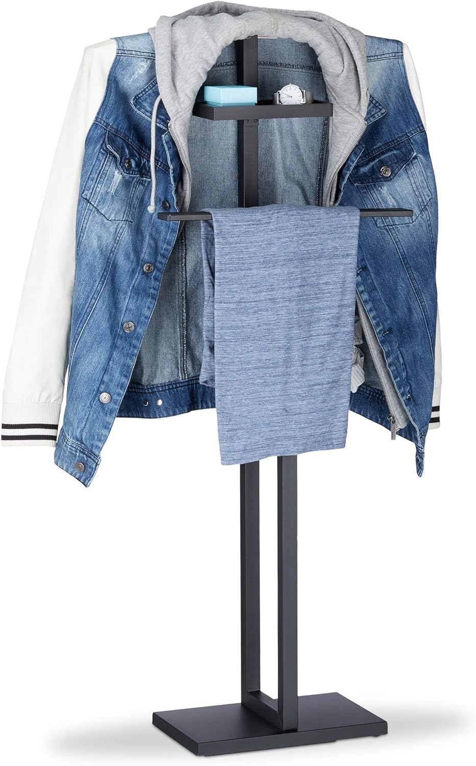 Relaxdays, schwarz Stummer Diener, Herrendiener, Kleiderbutler, mit Kleiderbügel und Hosenstange, Hx