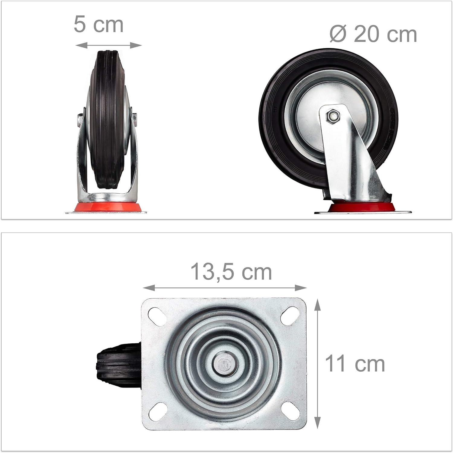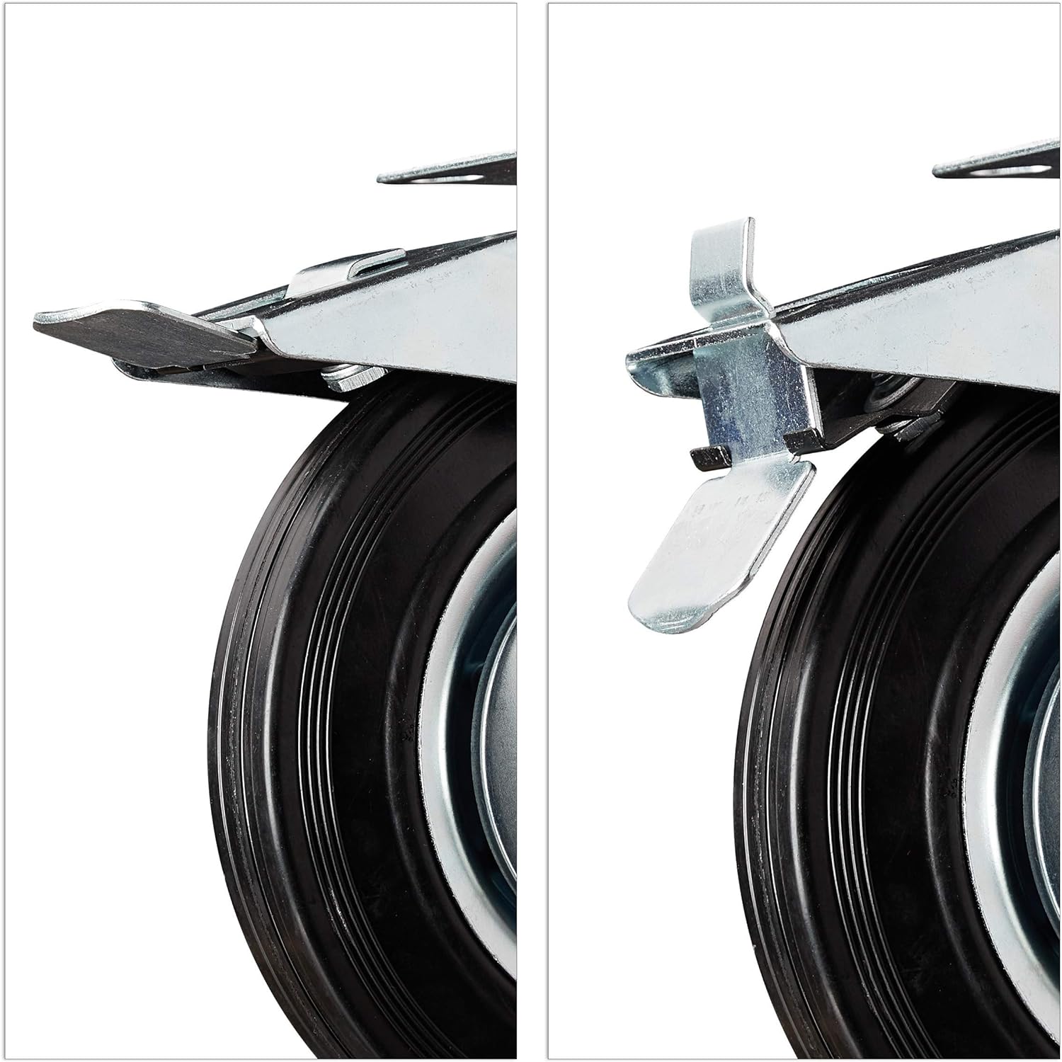 Relaxdays Schwerlastrollen 4er Set, drehbar, Kugellager, 2 Rollen mit Bremse, Tragkraft bis 800kg, R