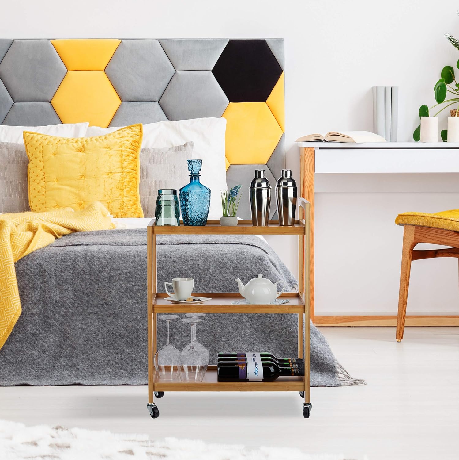 • Auf Rollen: Die 4 Räder sind 360° drehbar - Den Küchenwagen mit Leichtigkeit überallhin schieben