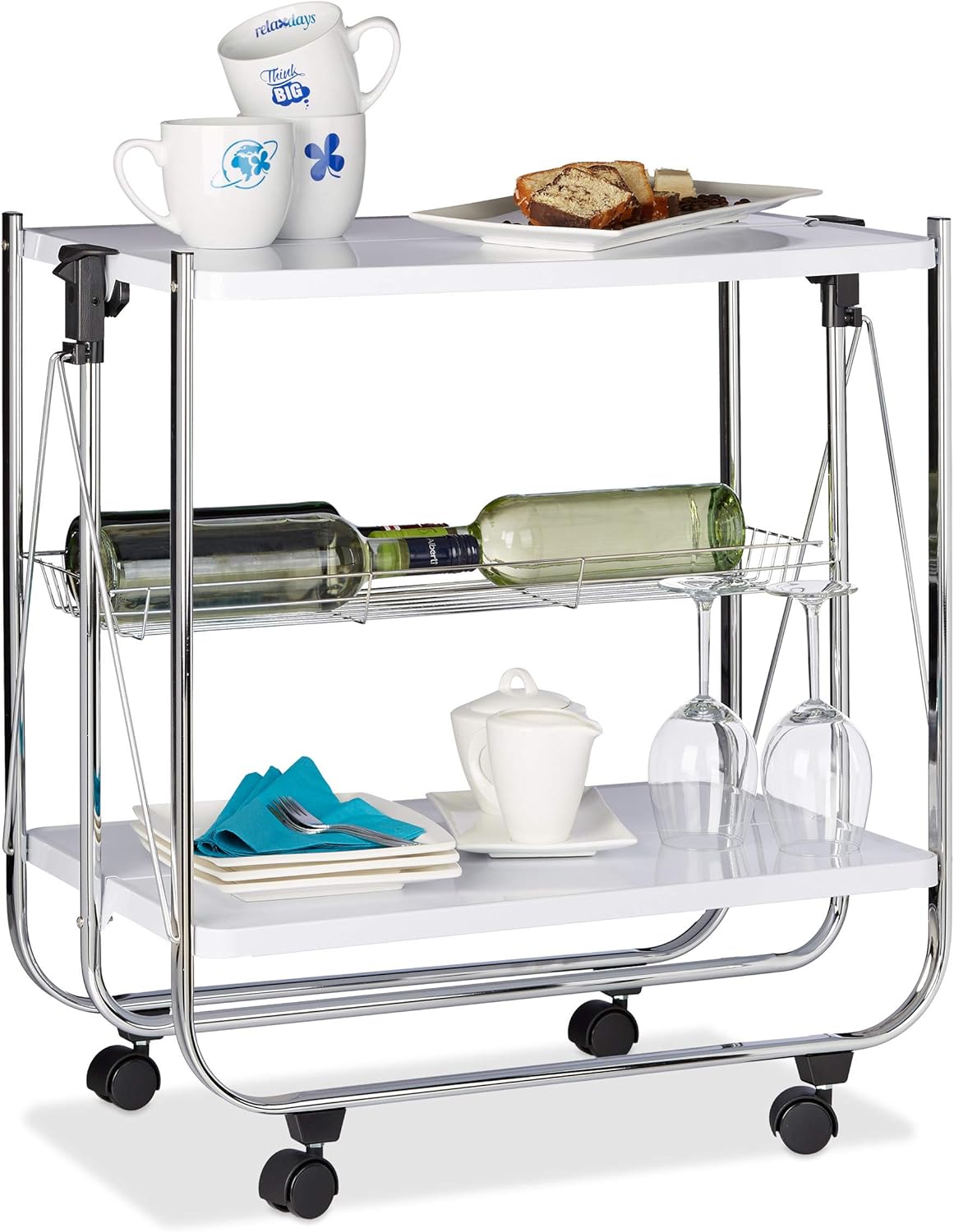 - Zusammenklappbar: In wenigen Sekunden gefaltet - Zum Klappen drücken Sie nur die seitlichen Hebel nach oben - Verstauen Sie den Etagenwagen platzsparend in einer Ecke der Küche oder im Abstellraum