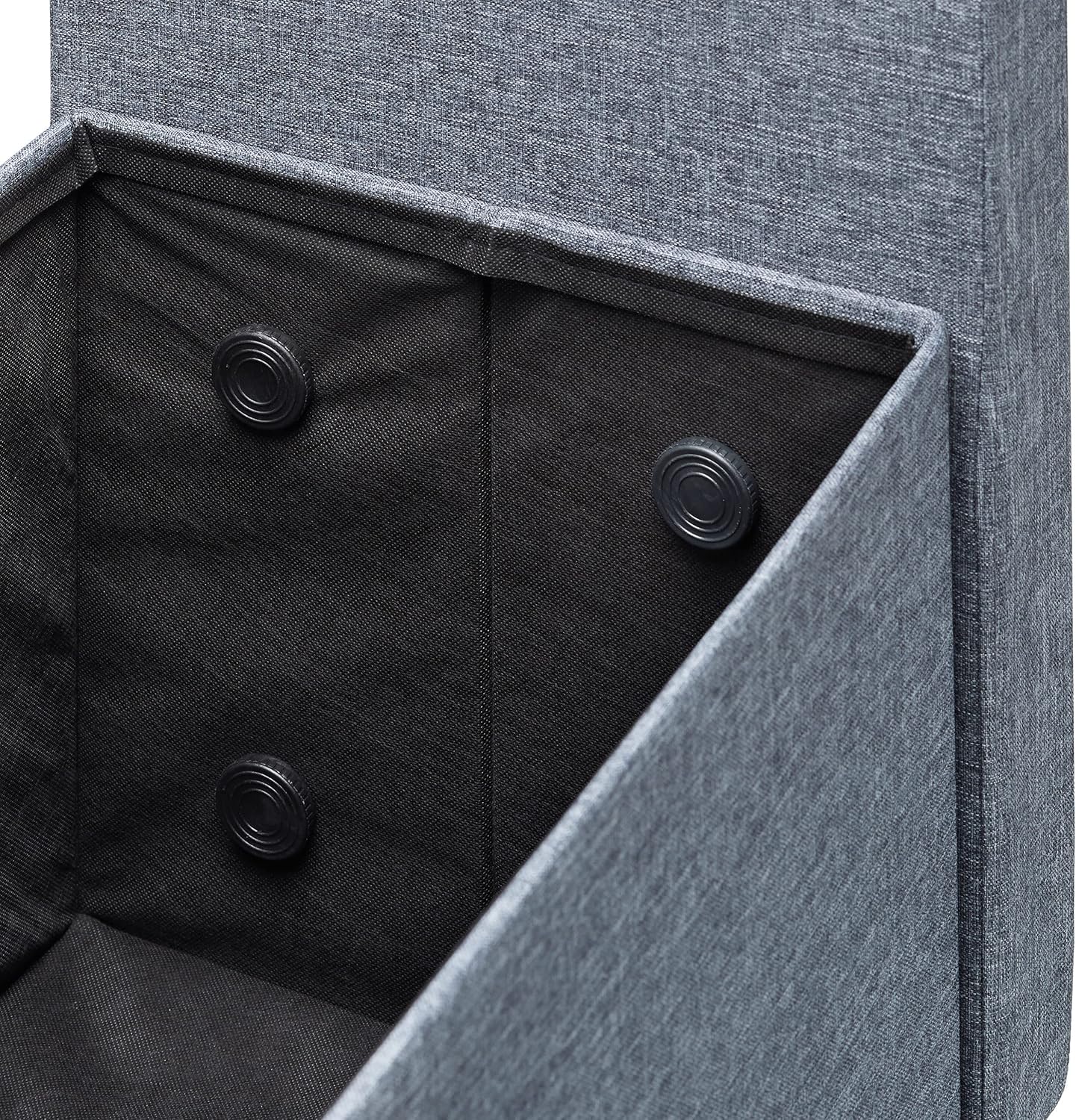 • Dunkle Variante: Die Sitztruhe im Sofa-Design hat einen bedeckten, grauen Stoffbezug
