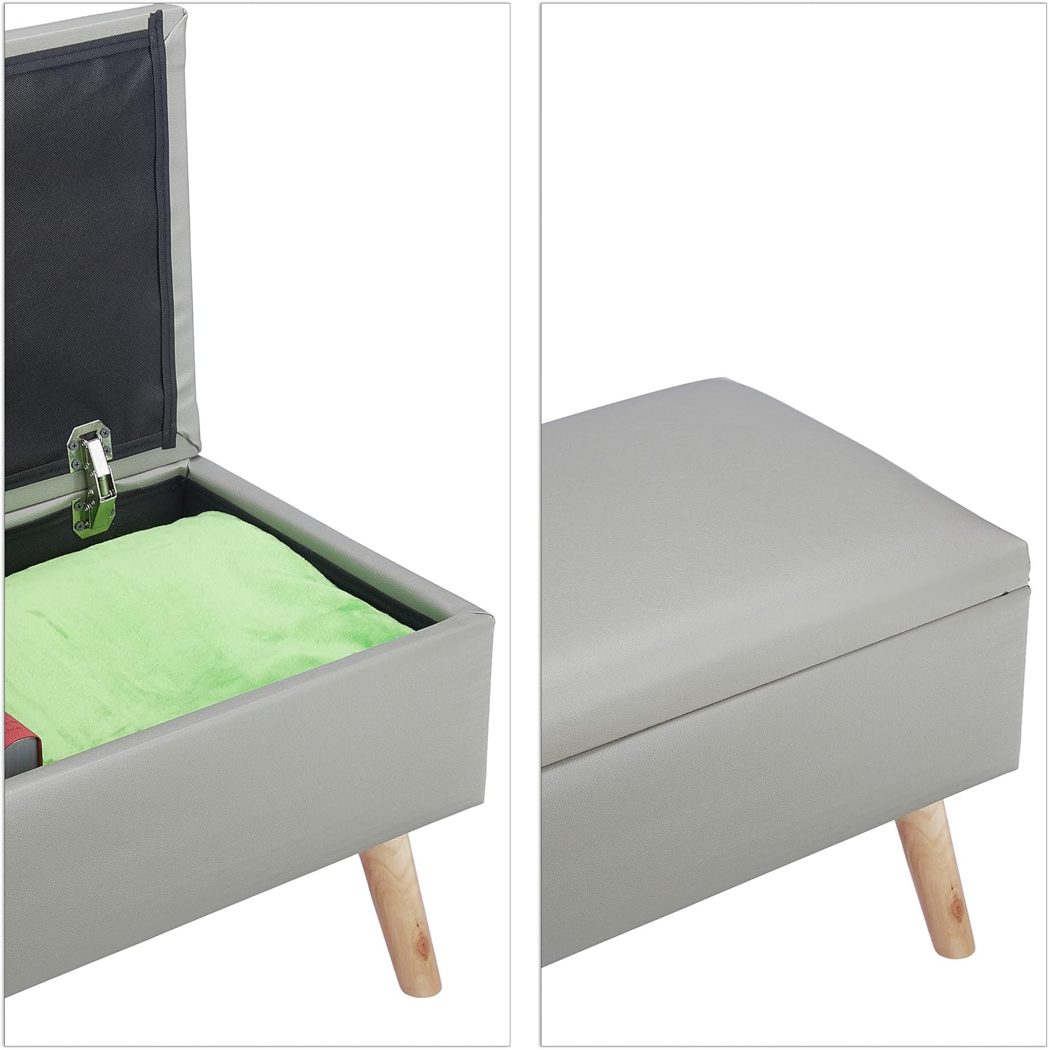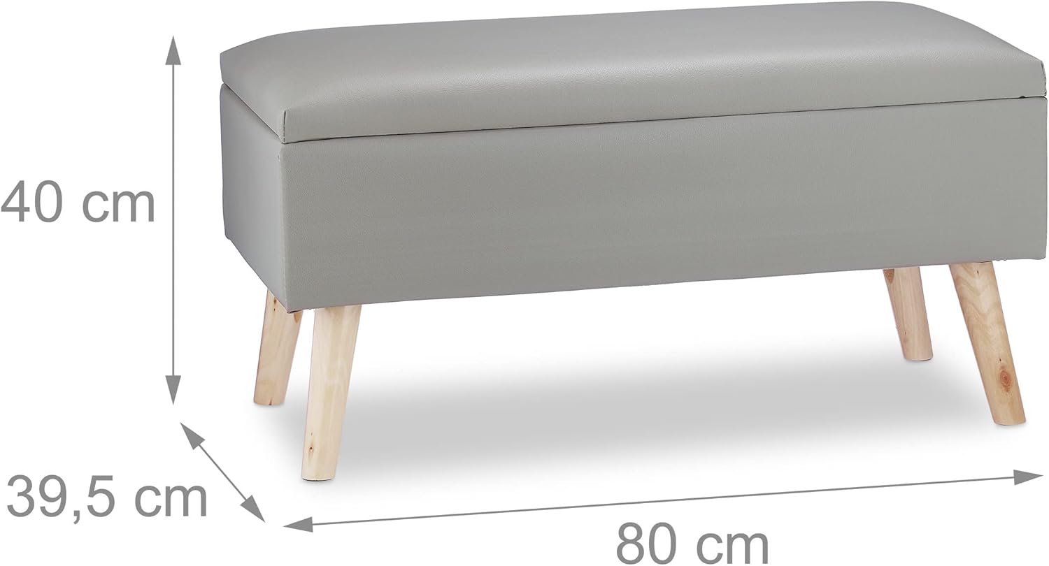 Relaxdays Sitzbank mit Stauraum, 40 L, gepolstert, Holzbeine, Truhenbank Kunstleder, HxBxT: 40 x 80