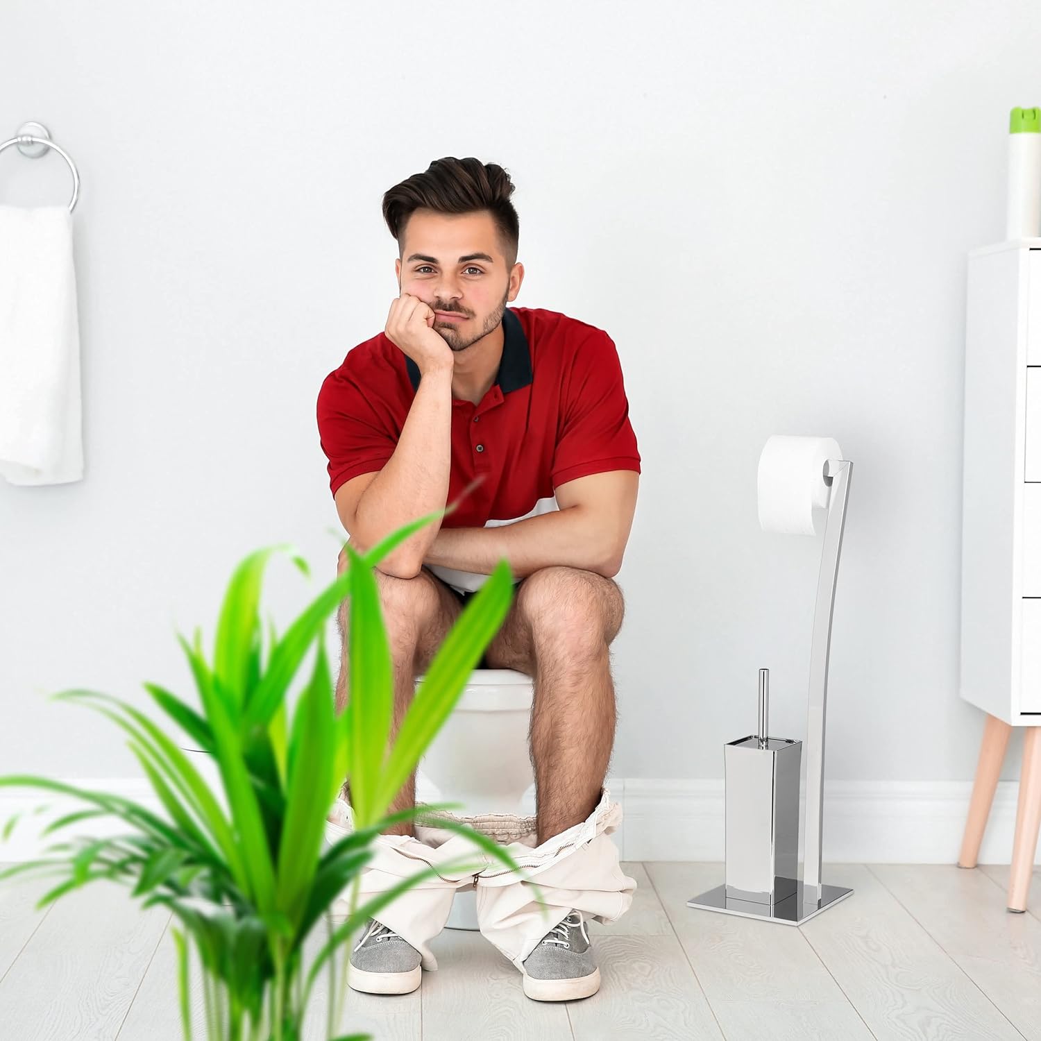 - Modern geschwungener zu einer Seite abfallender Klopapierhalter - Die WC-Garnitur aus Edelstahl verfügt über einen sicheren Stand mit 4 Anti-Rutschpads auf der Rückseite des stabilen Standfusses