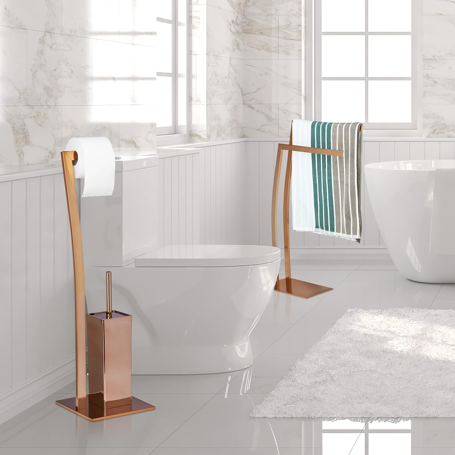 - Schicke Stand WC Garnitur aus dekorativem Edelstahl in zwei verschiedenen Lackierungen Silber oder Kupfer - Ein eleganter und stilvoller Blickfang für Ihr Badezimmer im ansprechenden Design