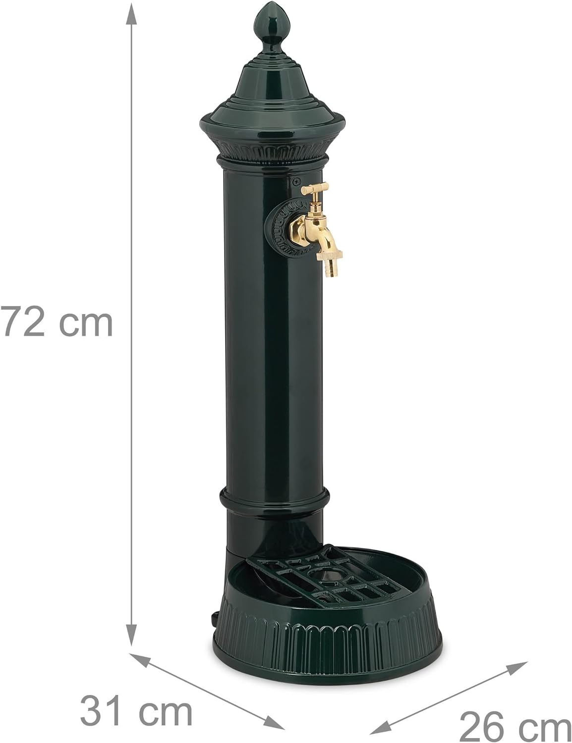 Relaxdays Standbrunnen Antik, mit Wasserhahn & Becken, HBT 72 x 26 x 31 cm, Wasserzapfsäule Garten,