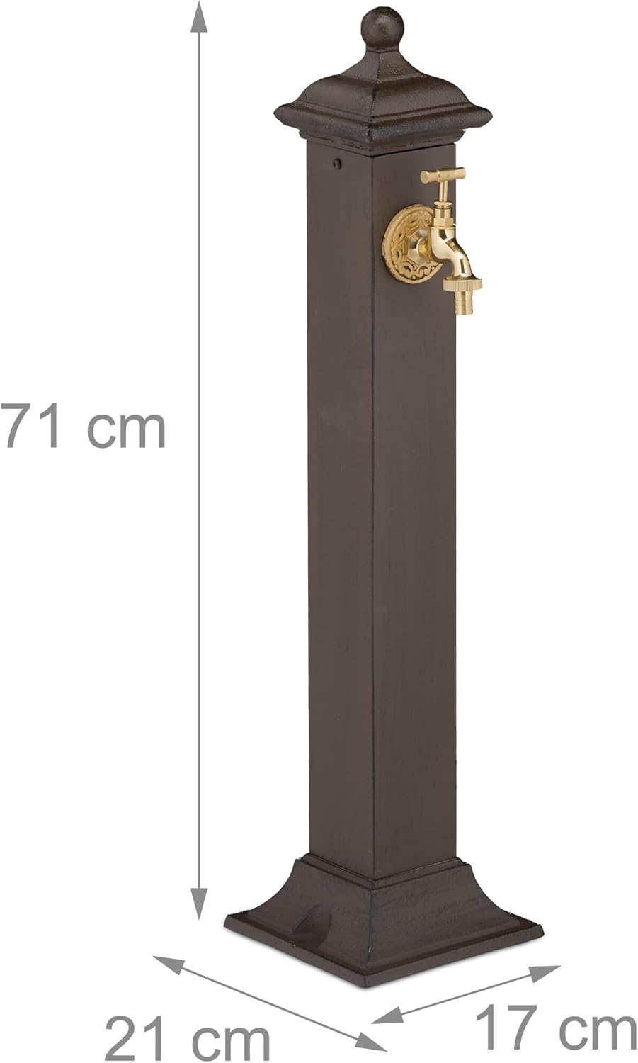 Relaxdays Standbrunnen Antik, mit Wasserhahn, HBT 71x17x21cm, Wasserzapfsäule Garten, Terrasse, Zier