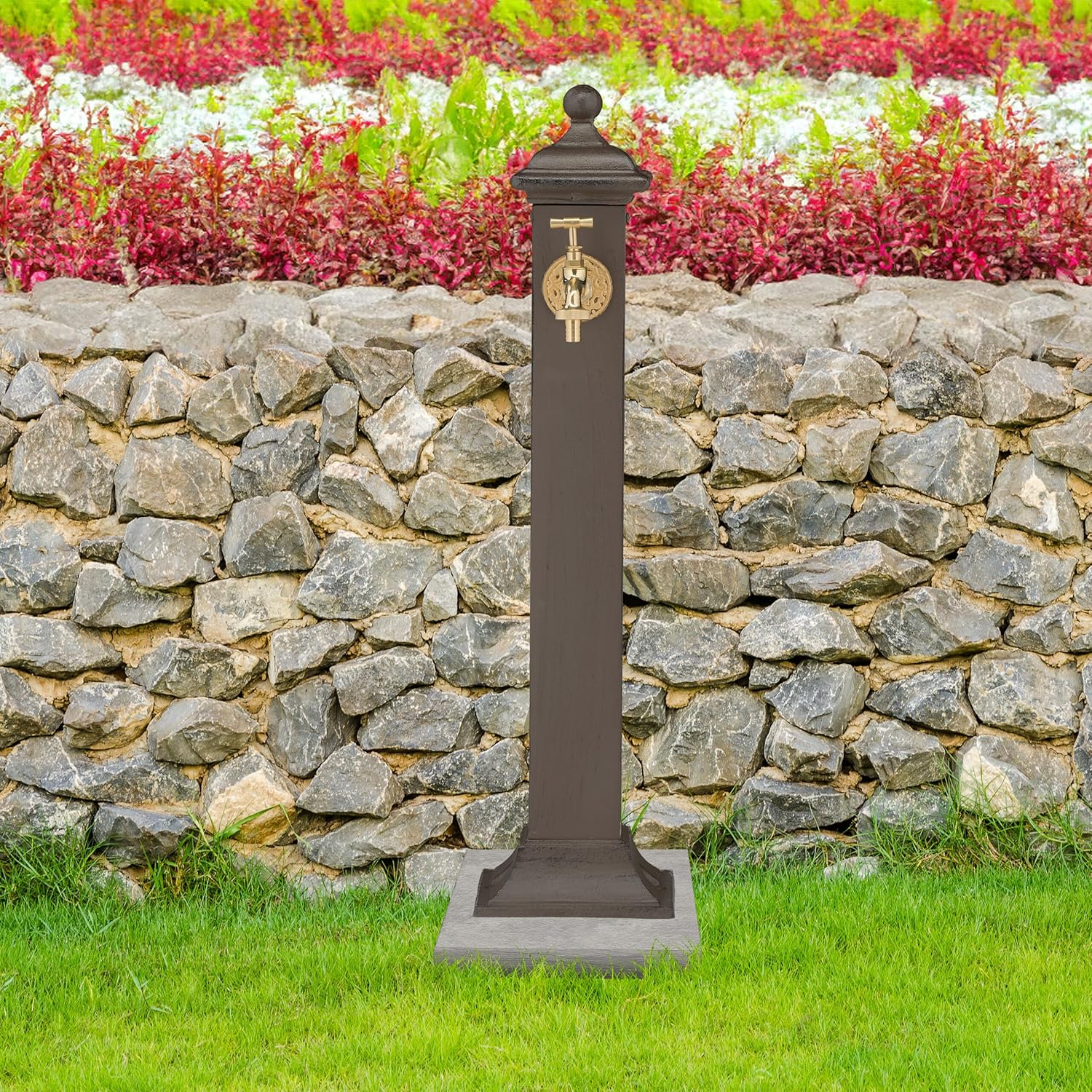 • Praktisch: Gartenbrunnen mit nostalgischem Wasserhahn - Anschluss für Schlauch im Säuleninneren