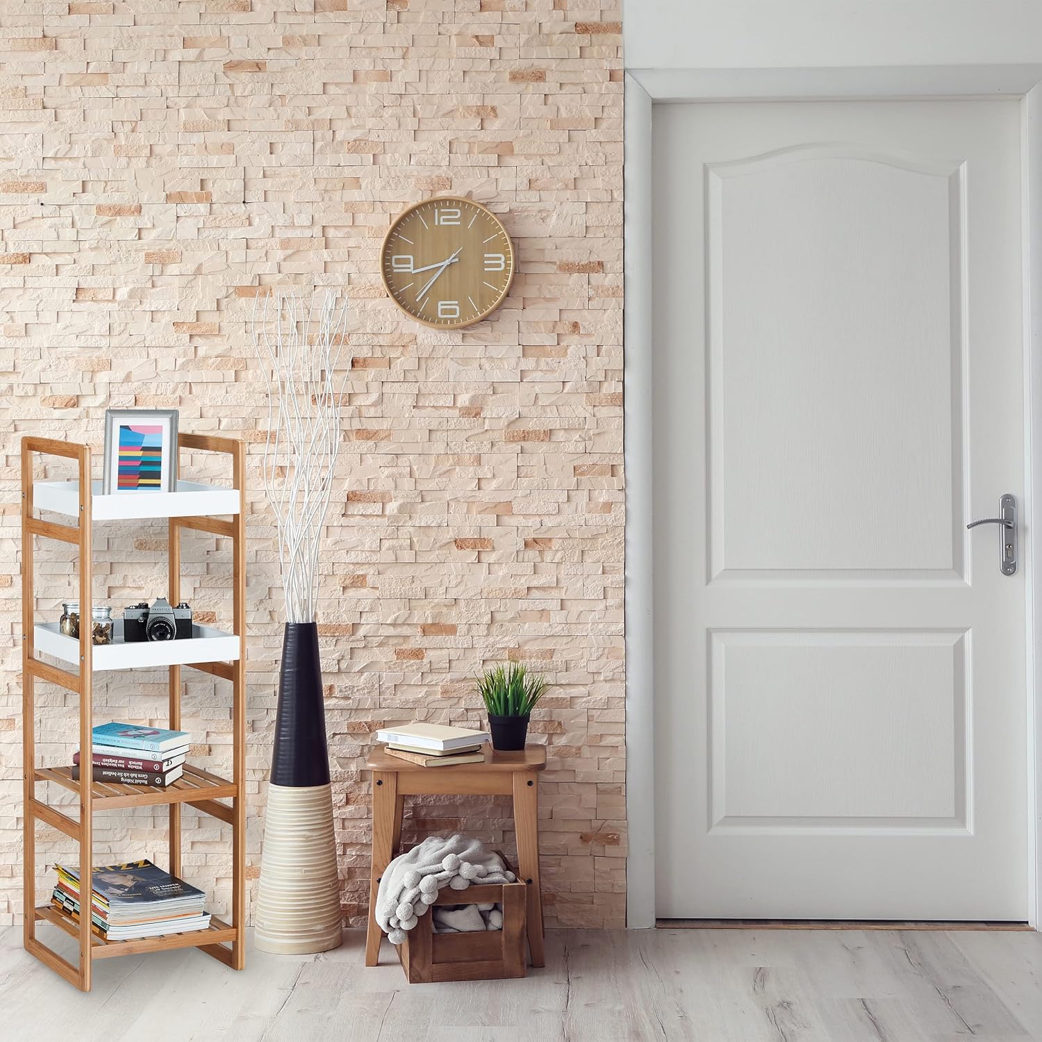 - Holzregal: Das offene Design ermöglicht es, schnell auf die Abstellflächen zuzugreifen - Holzoberfläche für eine natürliche Optik - Weisse MDF-Fächer sind der optische Hingucker