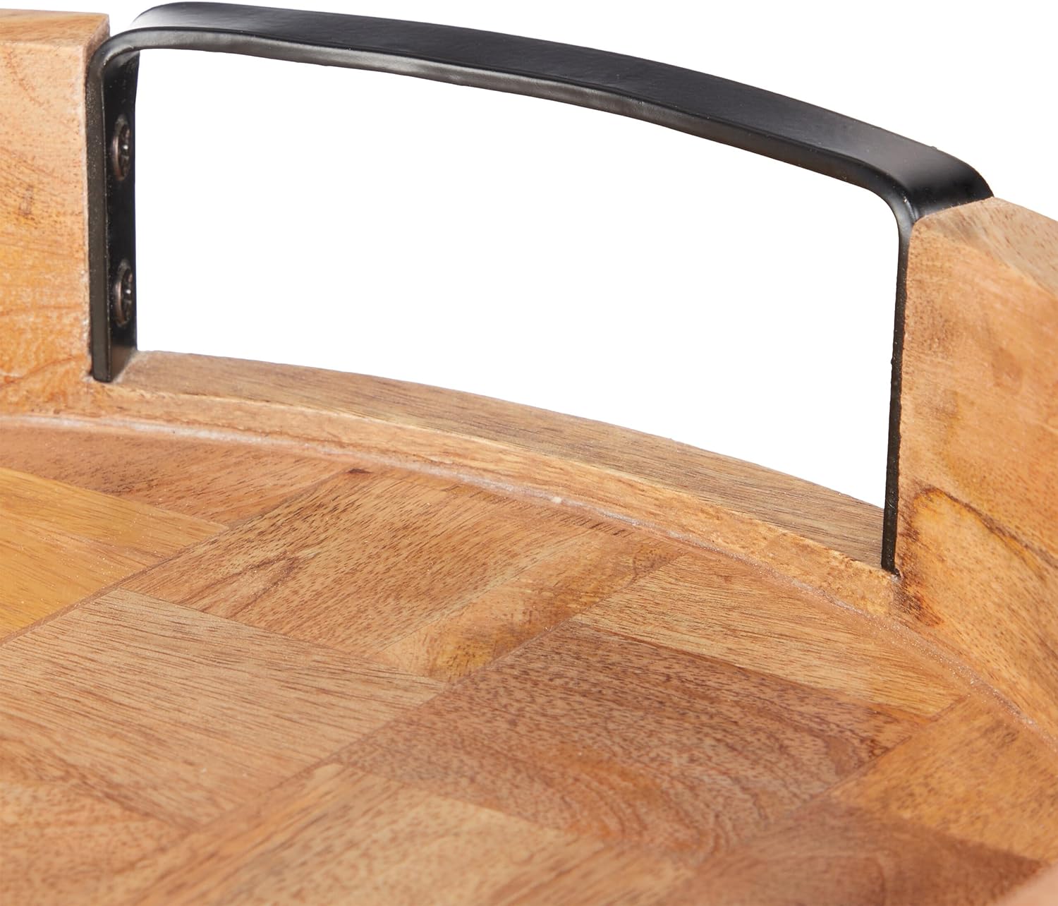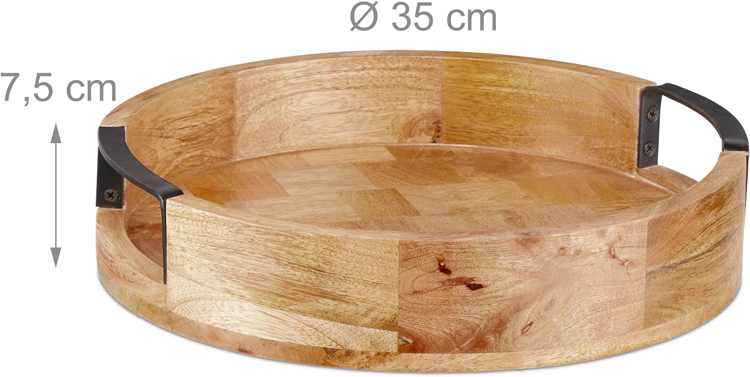 - Schick: Rundes Serviertablett aus Mangoholz - Mit Musterung - Ideal als Dekoelement in Küche und Co.