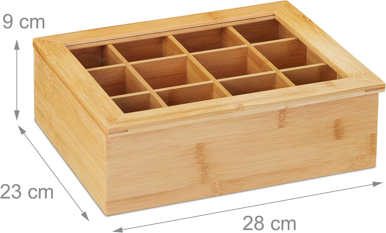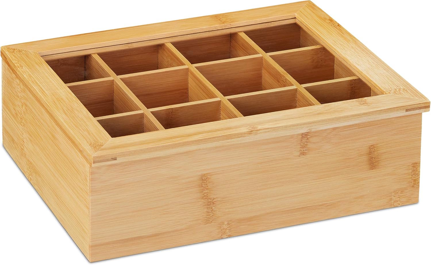 - Gut sortiert: Mit 12 grossen Fächern bietet die Teekiste Raum für Teebeutel, Kaffeekapseln und mehr