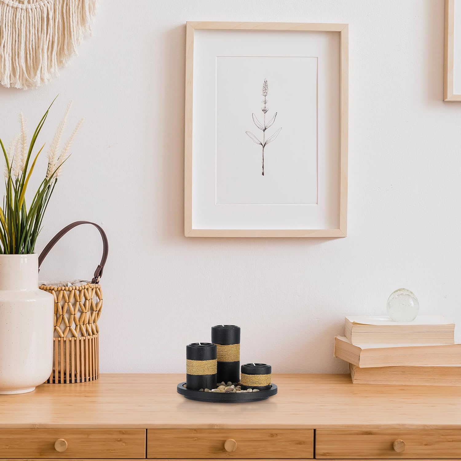 - Wohnaccessoire: Stilvolles Teelichthalter-Set mit 3 Teelichtständern, Kerzentablett und Dekosteinen