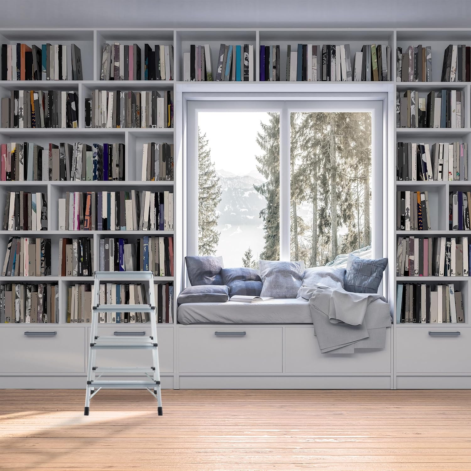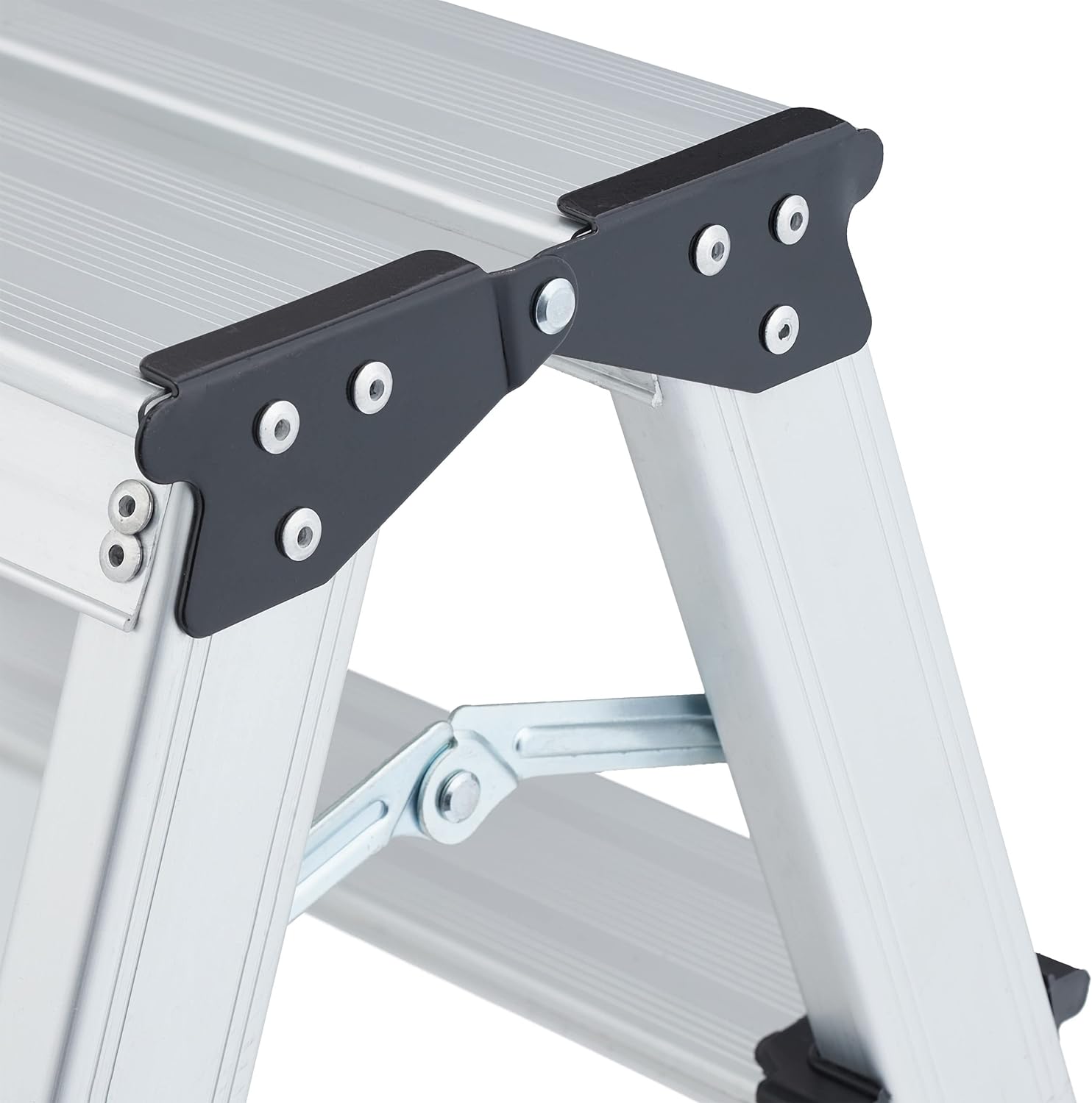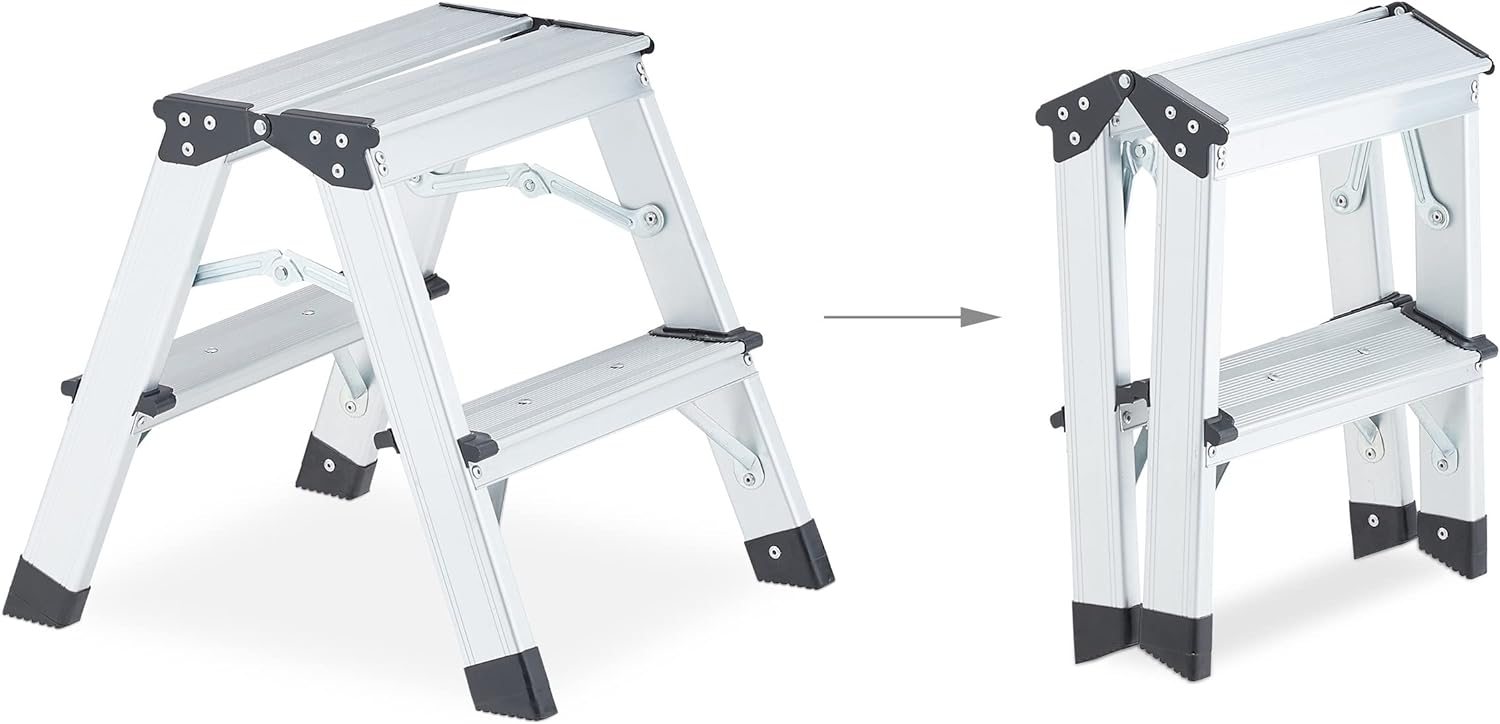 - Klappbar: Die Stehleiter kann bei Bedarf einfach zusammengeklappt und platzsparend verstaut werden