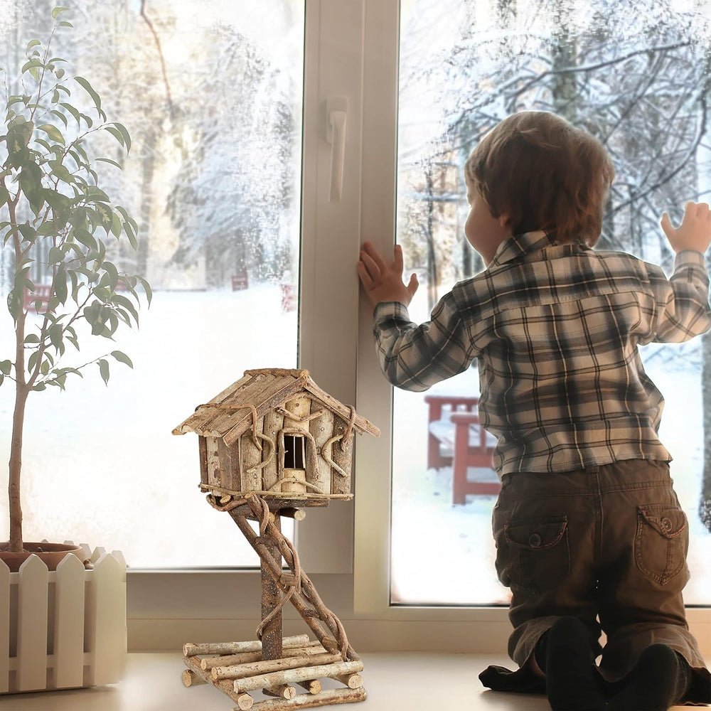 - Vielfältige Deko: Schöne Aufmachung für den Wohnbereich - Ideal für winterliches Deko-Ensemble - Rohes Mini-Baumhaus mit Raum für kreative Gestaltung