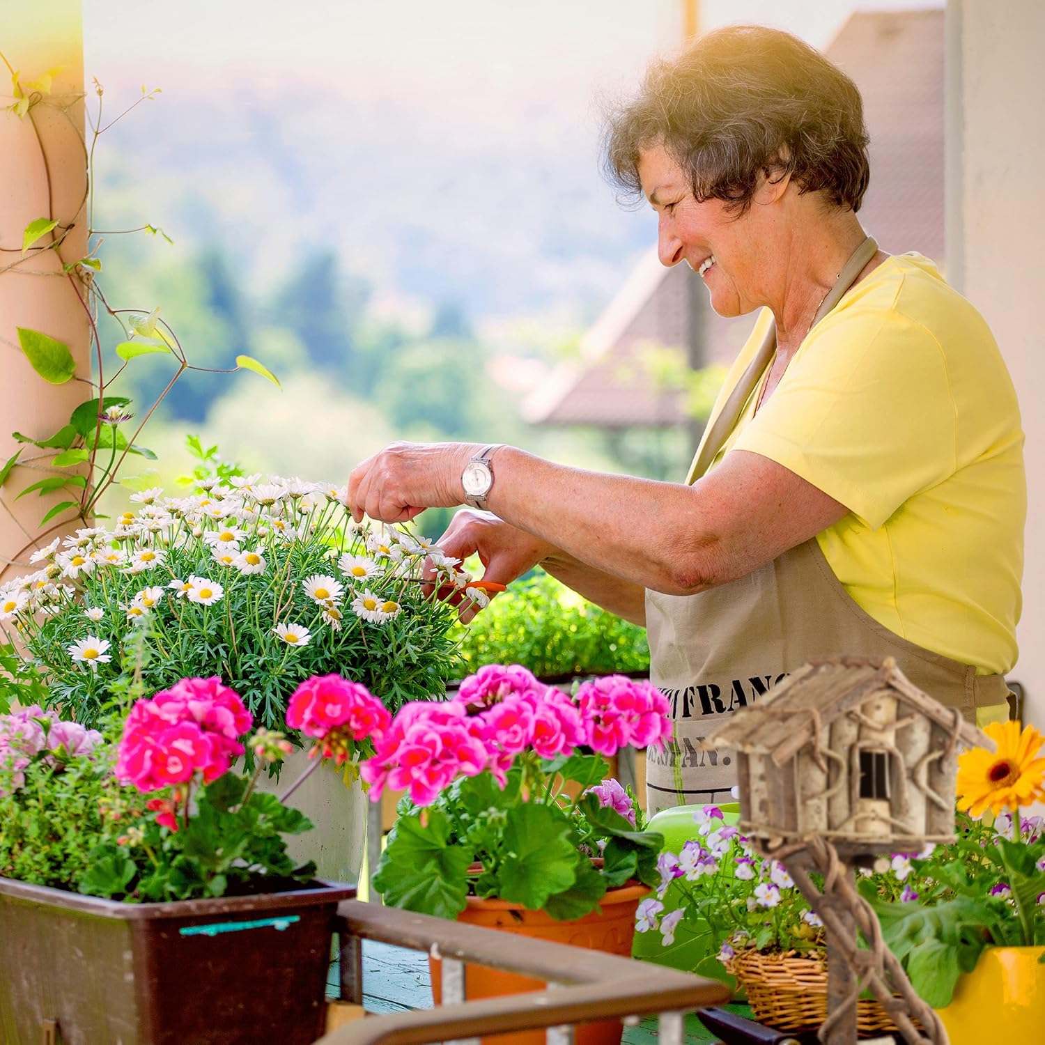 - Zum Stellen: Kleines Vogelhaus auf einem Pfahl - Freistehendes Miniatur-Häuschen zur Dekoration von Wintergarten oder Balkon - Masse H x B x T: ca. 42 x 21 x 17 cm