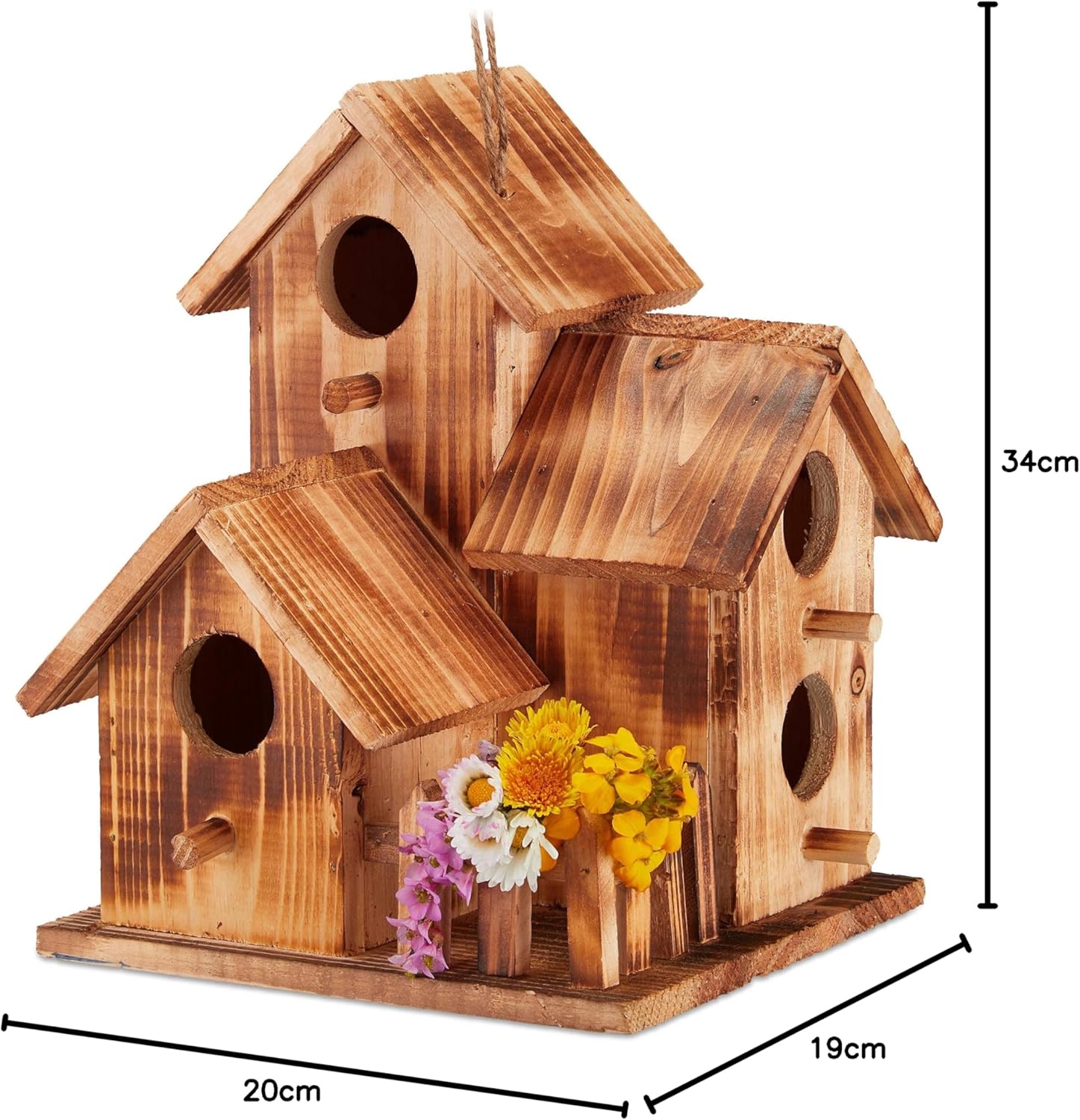 - Aus Holz: Das rustikale Vogelhaus besteht aus gebranntem Holz und versprüht einen natürlichen Charme