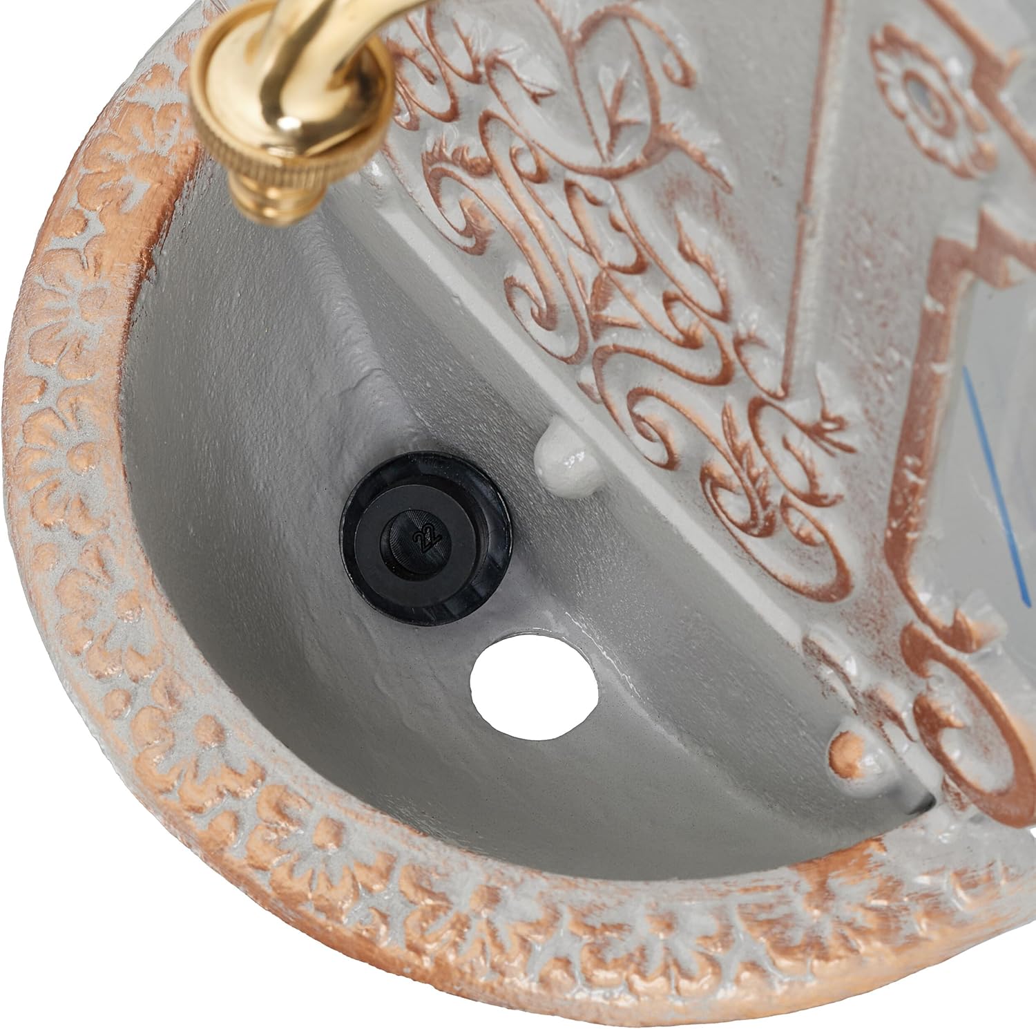 • Romantisch: Graues Gartenwaschbecken mit goldener Verzierung - Märchenhafter Blickfang im Garten