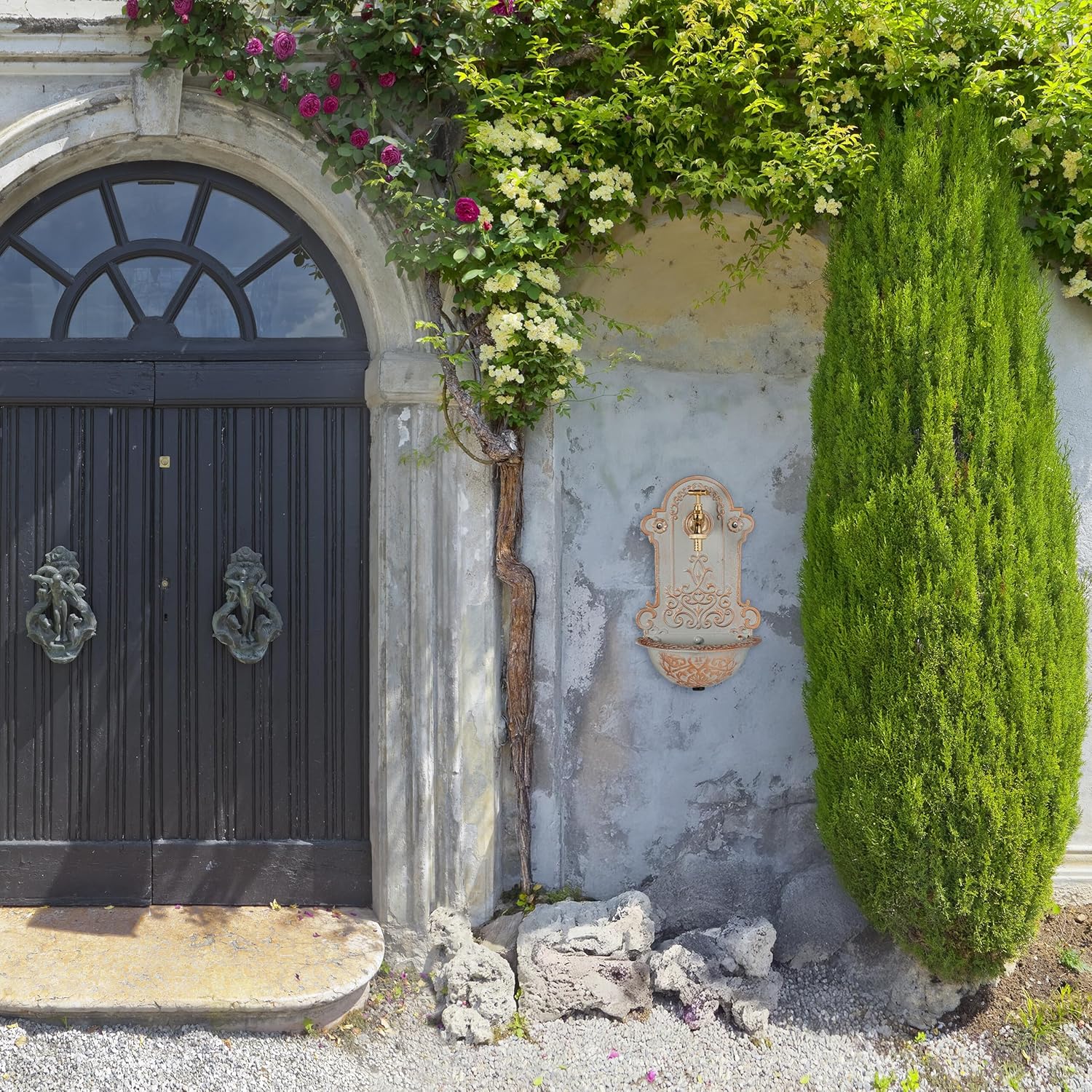 • Praktisch: Brunnen mit Wasserhahn aus Messing - Inklusive Schlauchtülle - Rückseitiger Anschluss