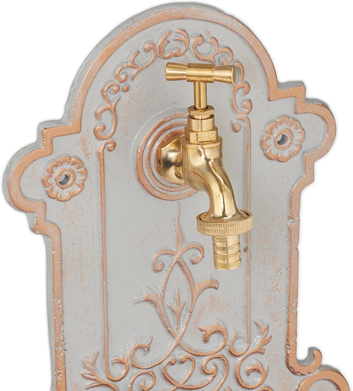 Relaxdays Wandbrunnen, nostalgisch, Waschbecken & Wasserhahn, Gartenbrunnen HBT 36 x 22 x 10,5 cm, G