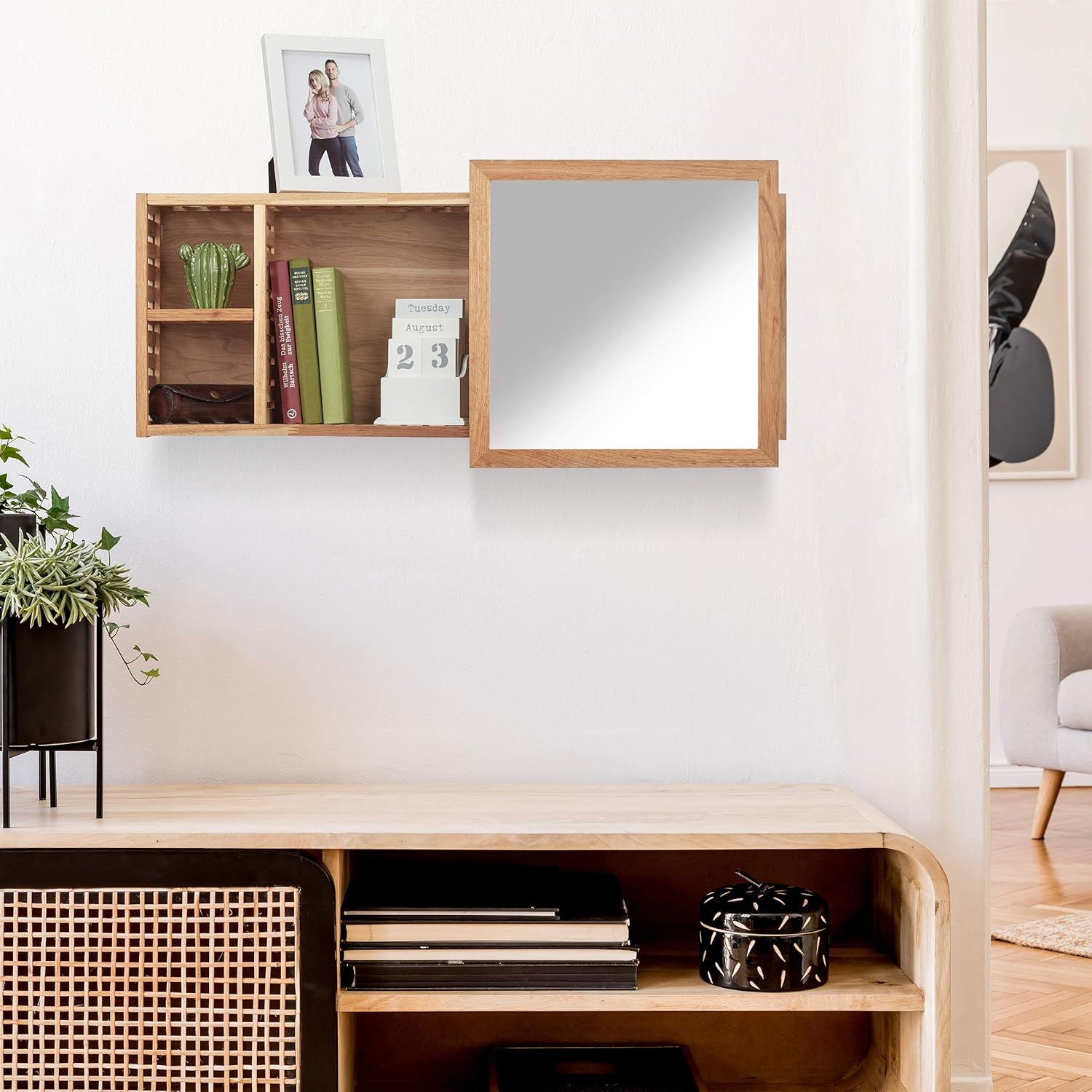 - Verschiebbarer Spiegel: Positionieren Sie den Spiegel so wie sie in gerade gebrauchen - Der Spiegel lässt sich auf einer Holzschiene leicht nach links oder rechts bewegen