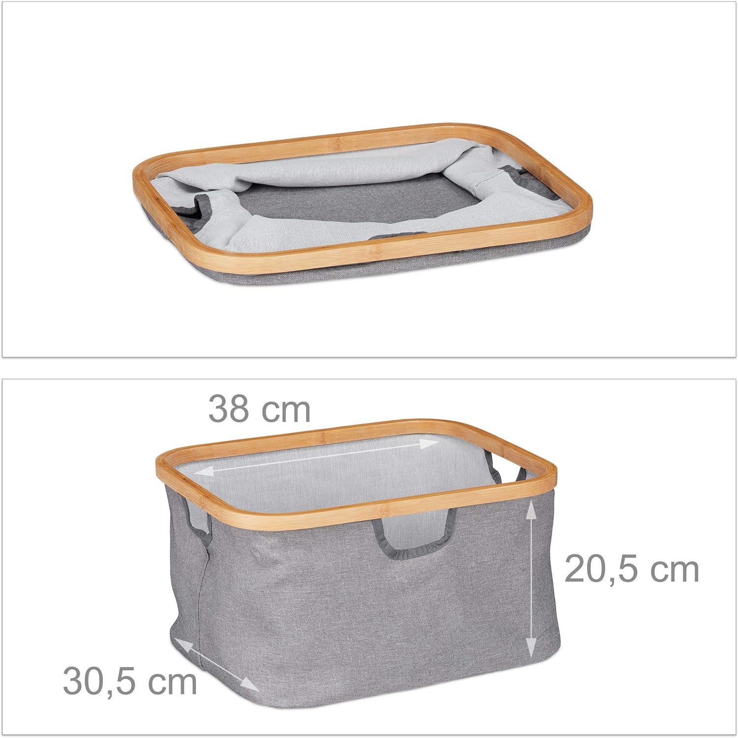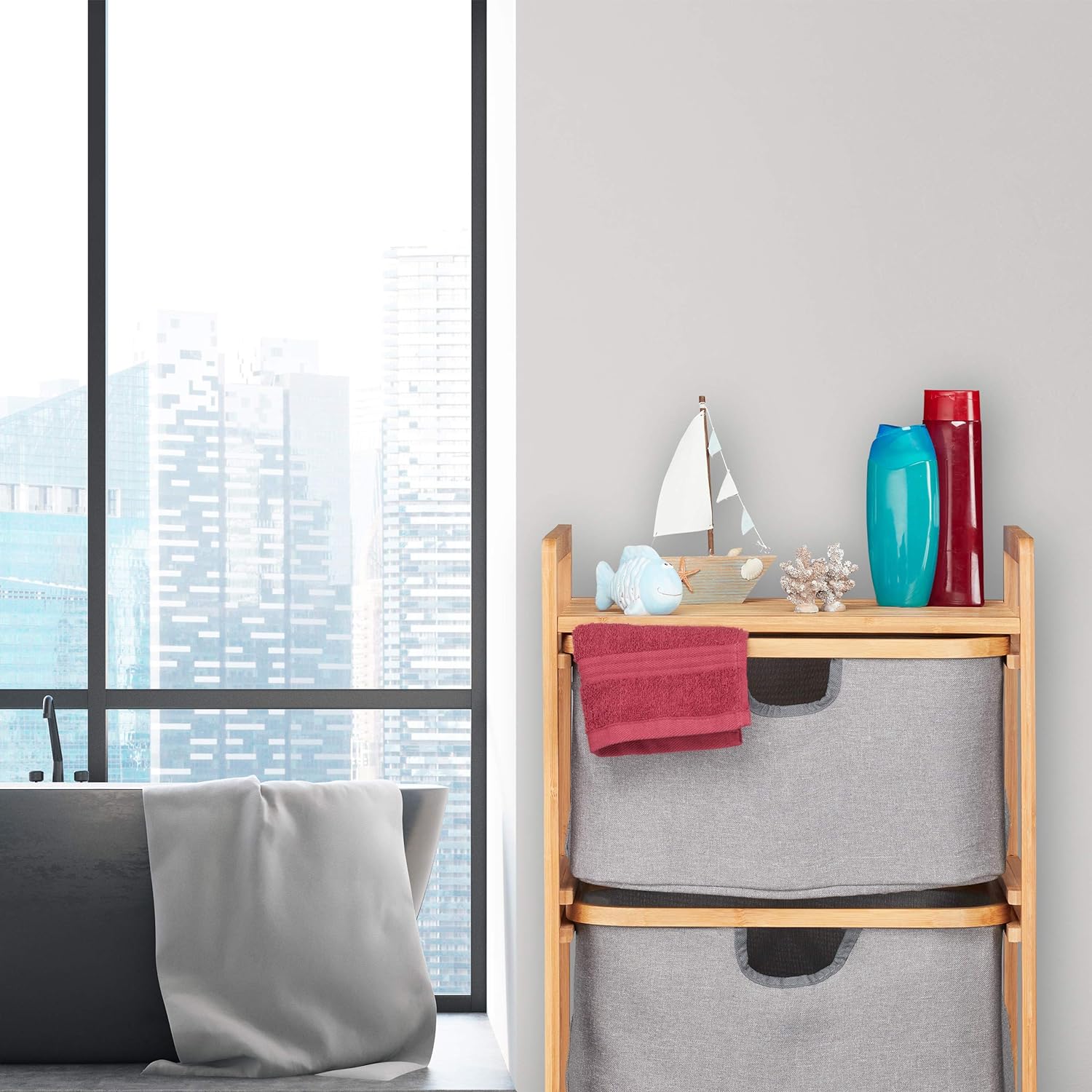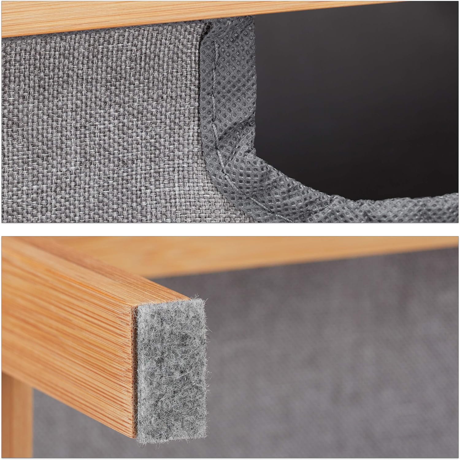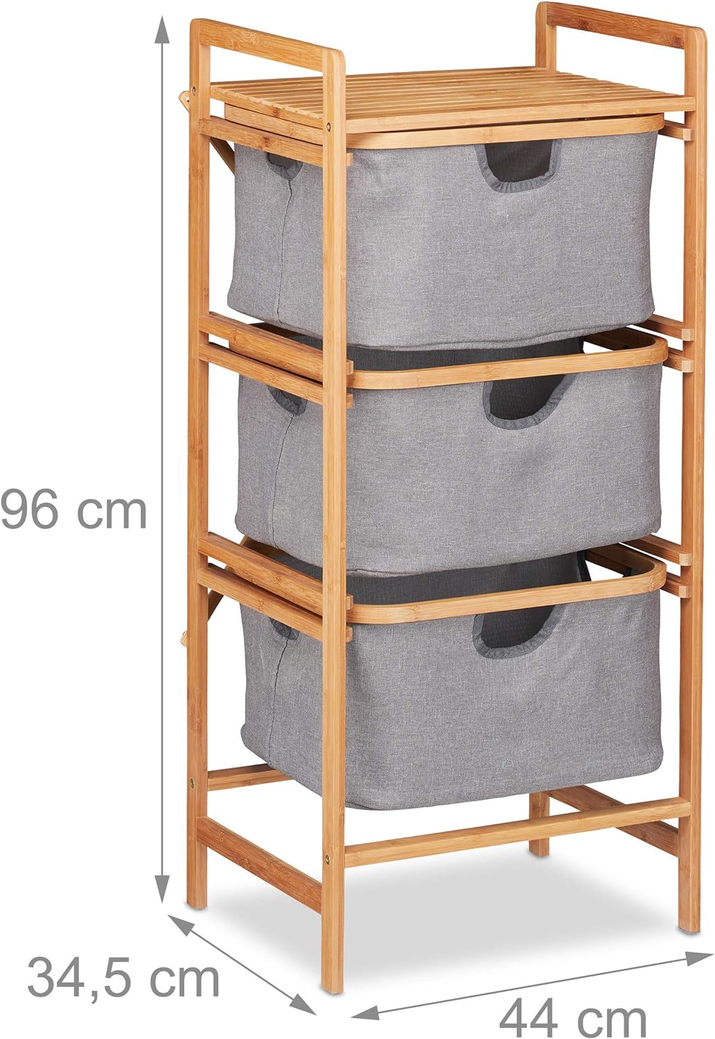 - Platzsparend: Regal Wäschesammler aus natürlichem Bambus - 3 ausziehbare Fächer aus grauem Polyester