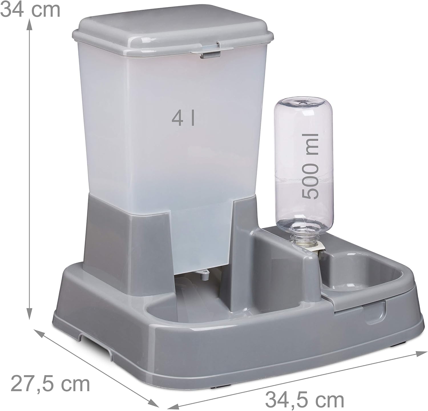 Relaxdays Wasser- und Futterspender, Futterautomat Katzen & Hunde, Flasche, Kunststoff, HBT 34x34,5x