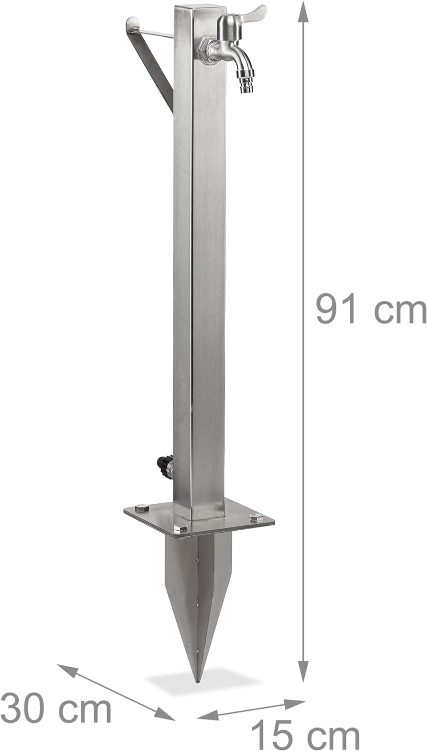 - Zum Stecken: Stehende Wasserzapfsäule mit Erdspiess - Bei Bedarf 4 Bodendübel für Steinplatten nutzen